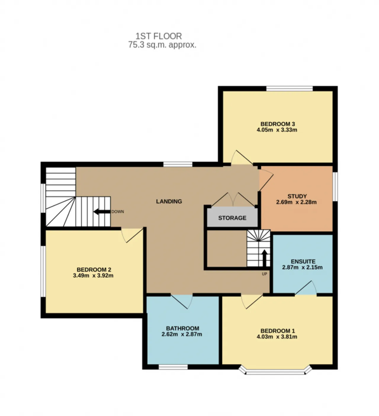 Bedroom 1 4.03m*3.81m Large bedroom to front of home with a bay window overlooking the south facing front garden. This room has an array of built in wardrobes and has its own three-piece en-suite.