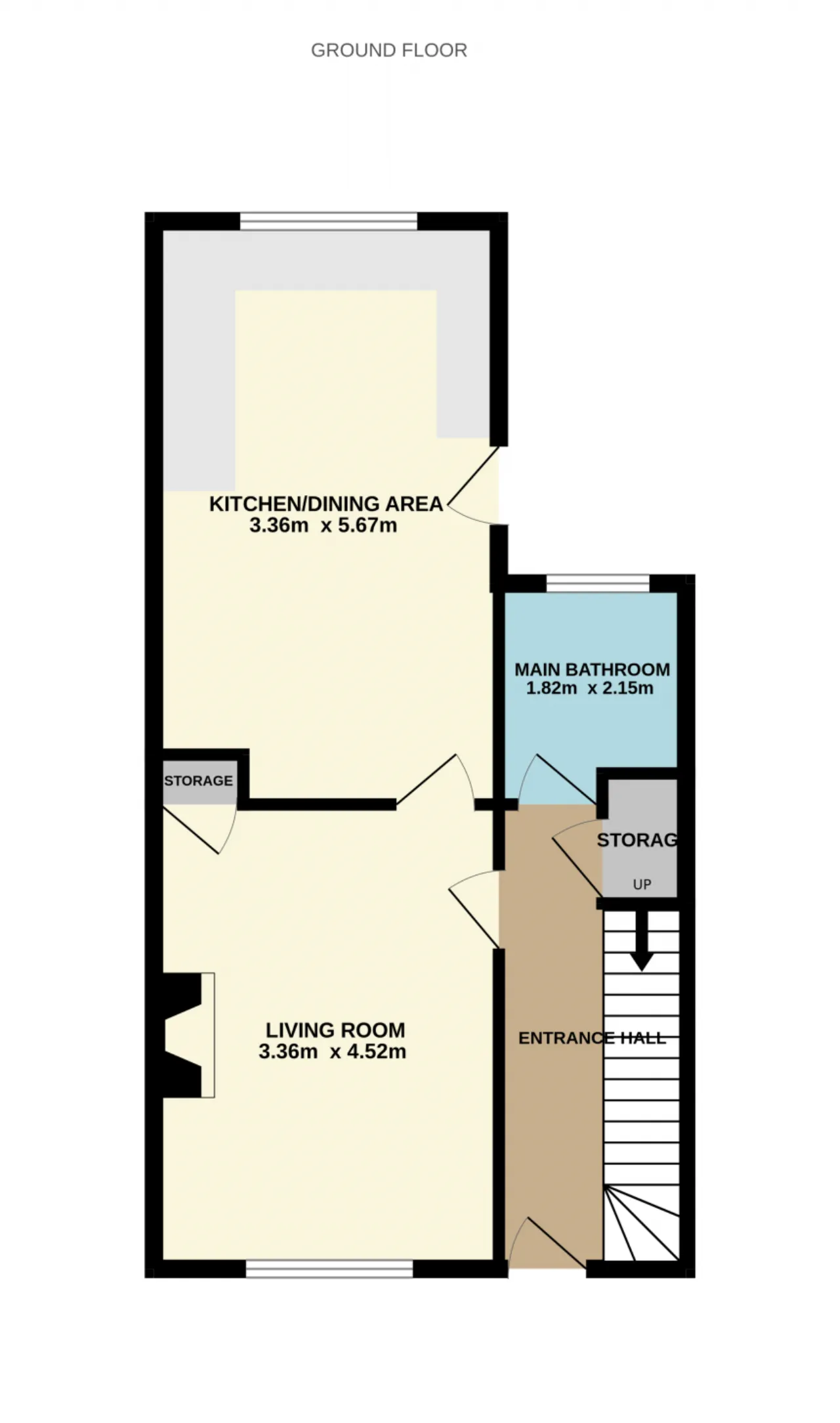 Kitchen/Dining Area 3.36m x 5.67m The kitchen/dining area comes fully fitted with both floor and eyelevel units incorporating a selection of essential kitchen appliances, a window overlooks the rear garden, and a side door provides access. The dining area is an open reception space.