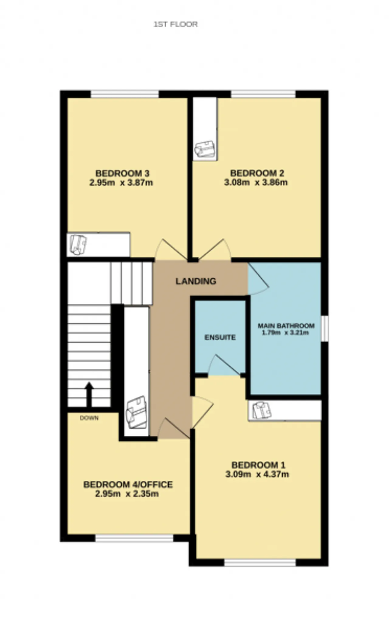 Bedroom 1 3.09m x 4.37m Large double bedroom to the front of the home. Benefits from built in wardrobes and an ensuite.
