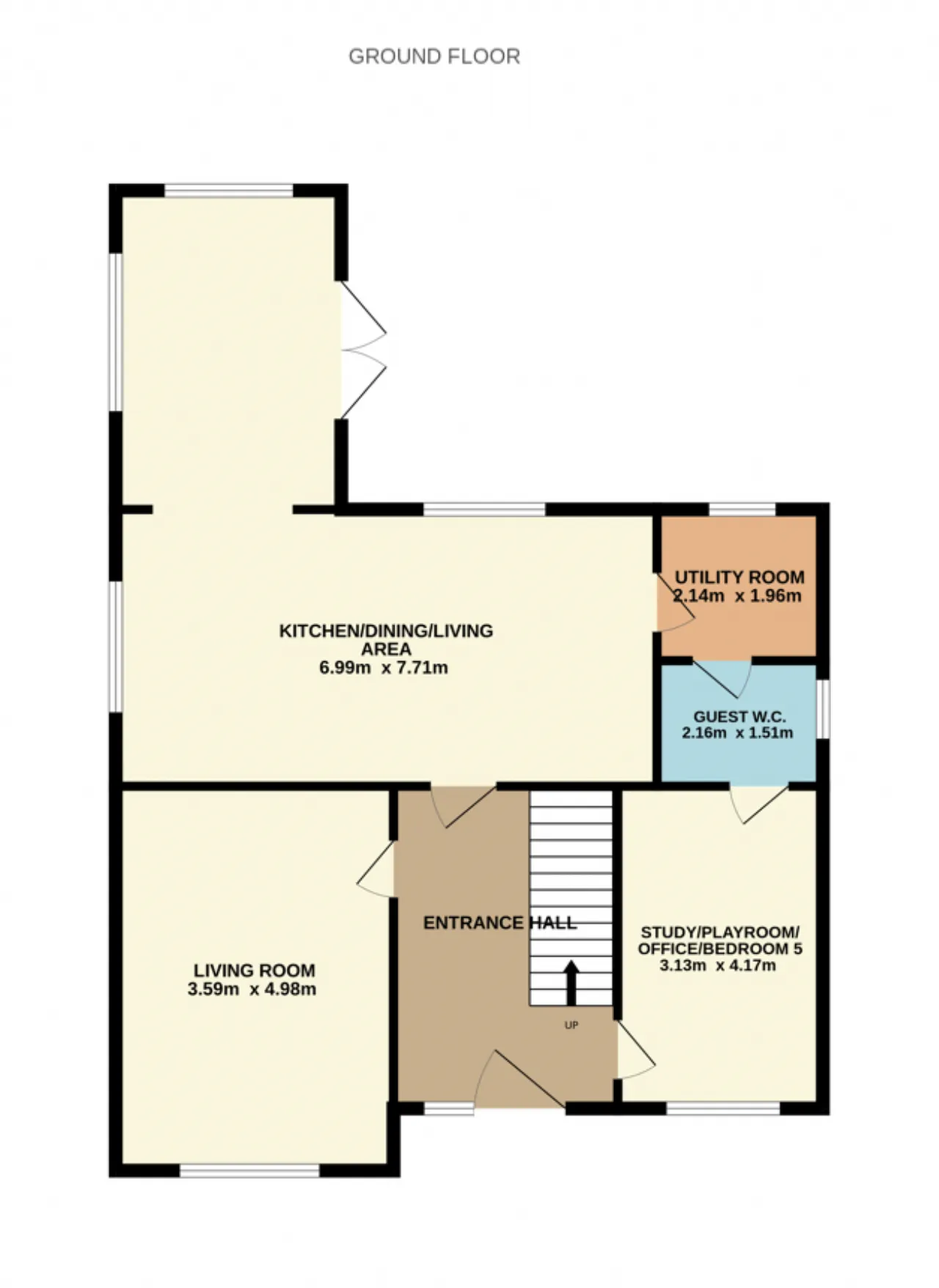 Study/Playroom/ Office/Bedroom 5 3.13m x 4.17m This is a spacious reception room to the front of the home, with a large window overlooking the front garden and green. It can be used for multiple uses.
