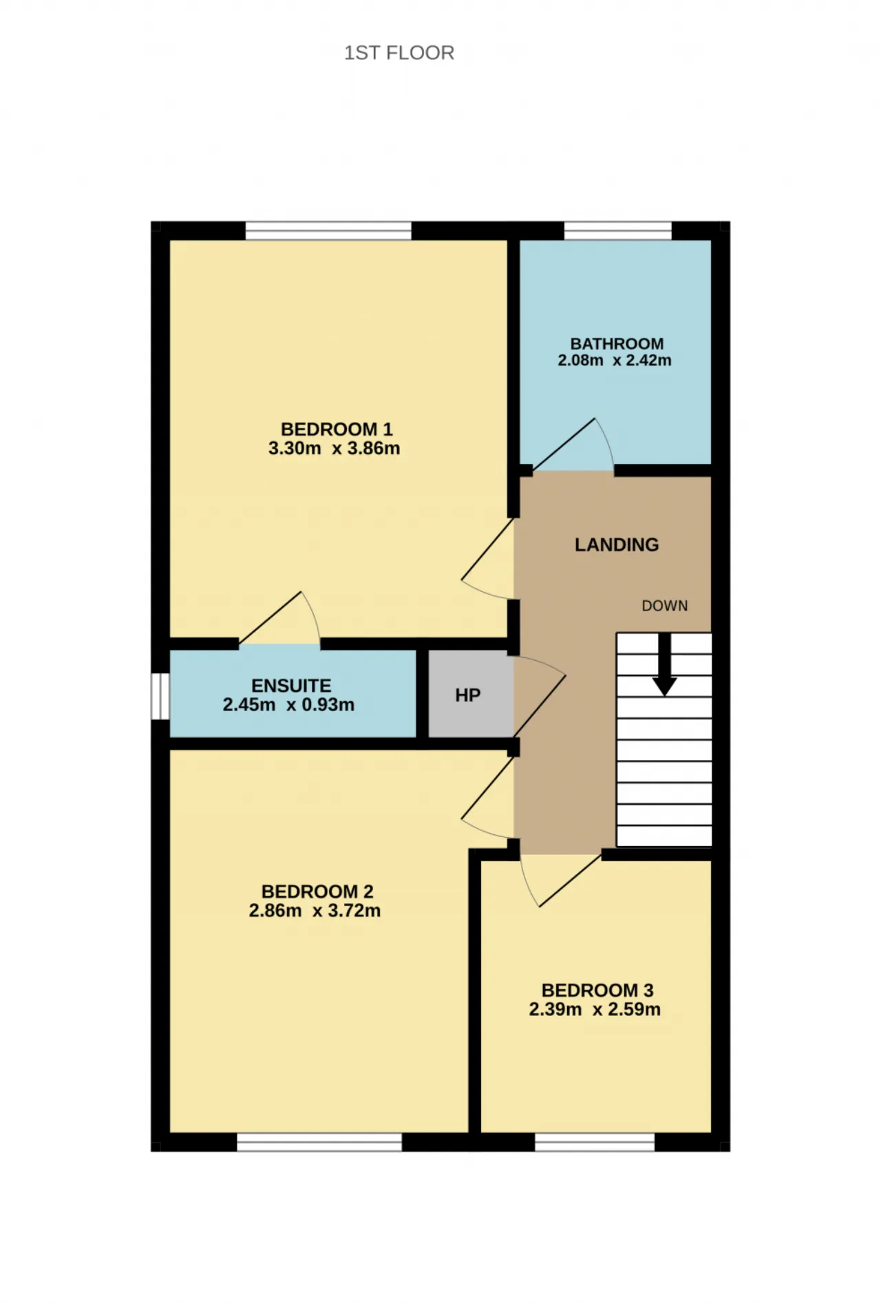 Landing 1.94m x 3.59m Large and open landing providing access to all rooms on the first floor.