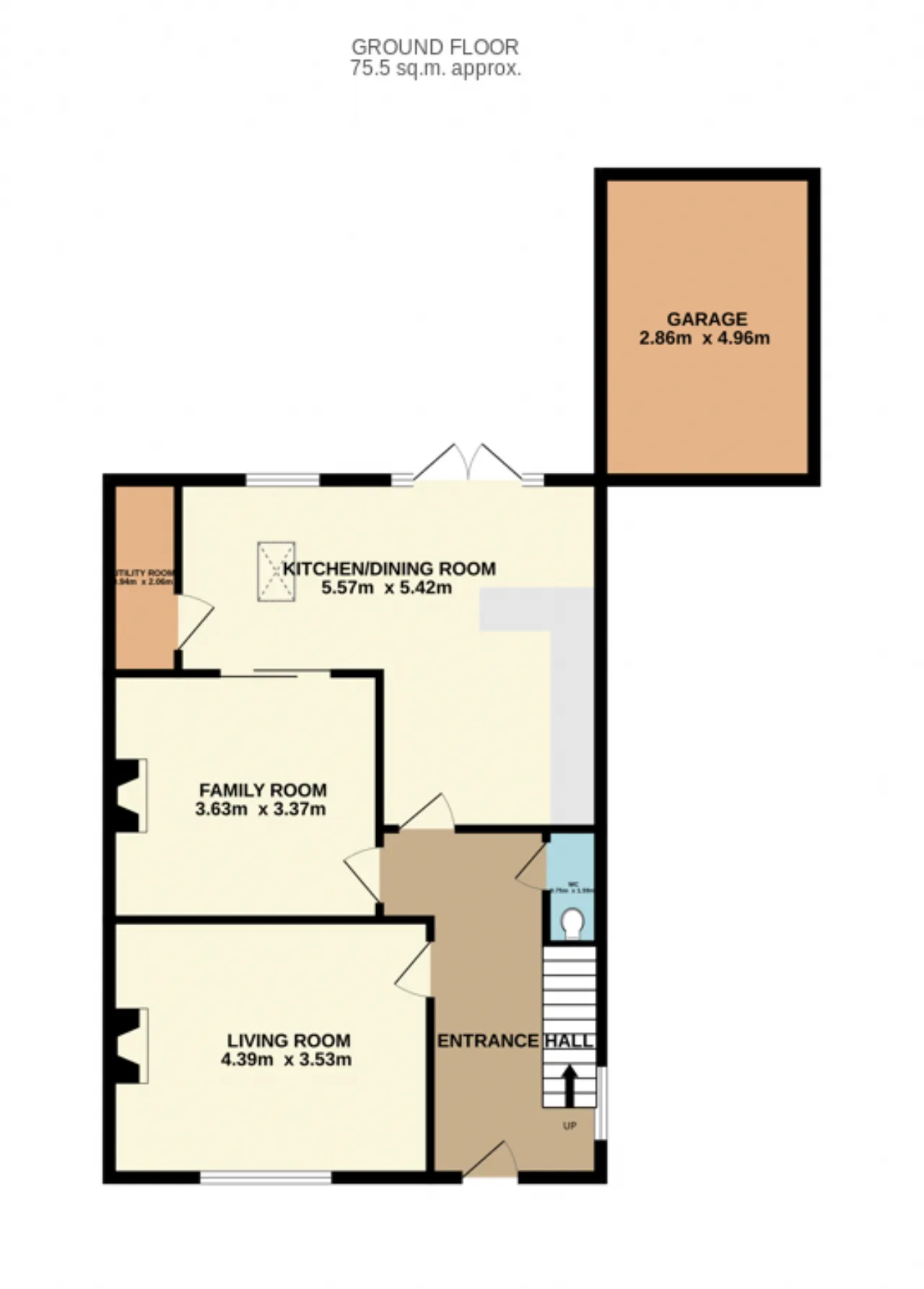 Accommodation in brief extends to an entrance hall, living room, family room, open plan kitchen/dining room, utility and W.C, which are all located on the ground floor. The first floor boasts three spacious double bedrooms and a family bathroom.