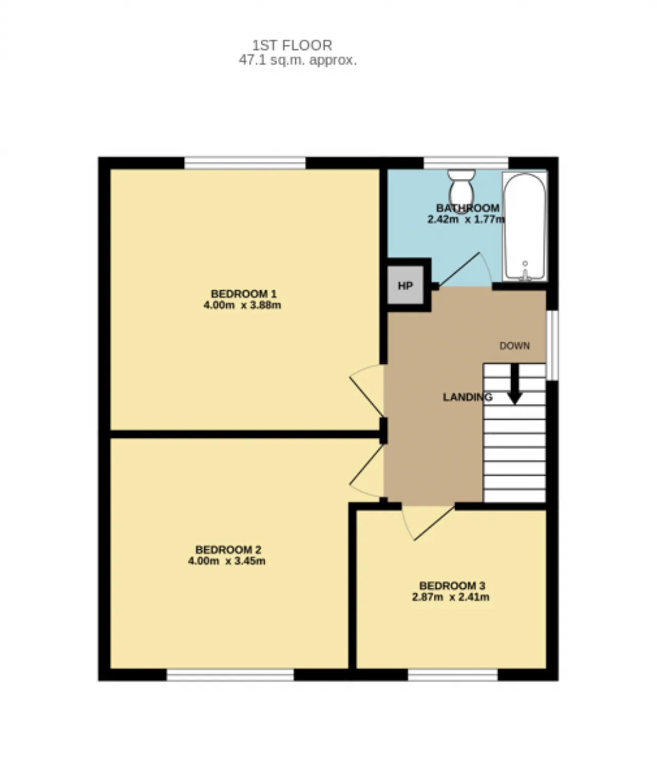 Bedroom 3 2.42m x 2.87m Fully carpeted single bedroom.