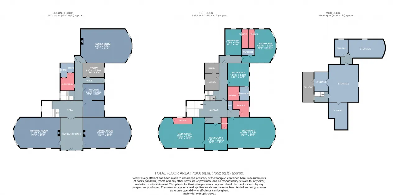 Offering approx. 7,651 sq. ft of living accommodation over three floors, including six en-suite Bedrooms and three Formal Reception rooms, on c. 17 acres of mature grounds, laid to lawn, grass tennis court, walled gardens, woodlands and paddocks.