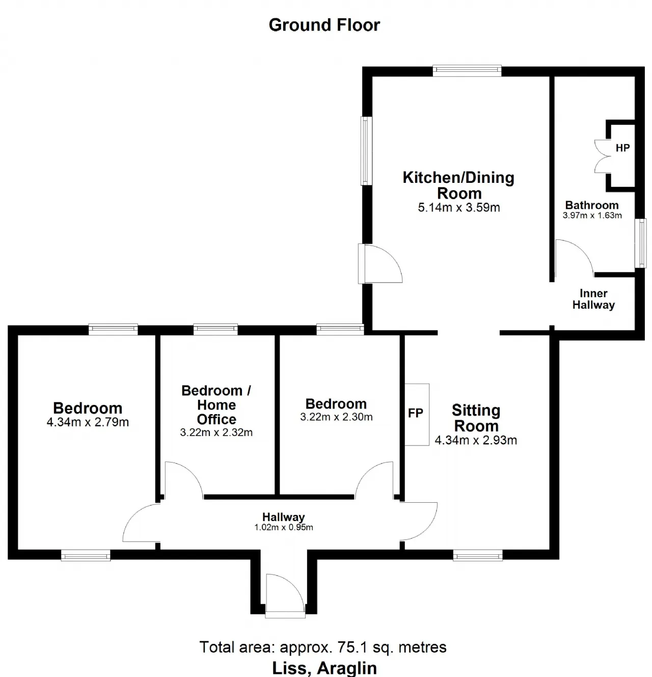 The property features one reception room and a kitchen, along with 3 bedrooms. The property sits on approx. 0.4 of an acre and has benefitted from new windows and doors and a refurbishment internally.