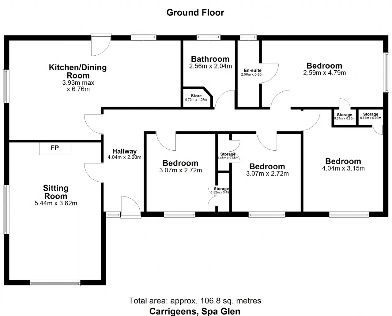 Bedroom 3 3.07m x 2.72m Laminate Flooring.