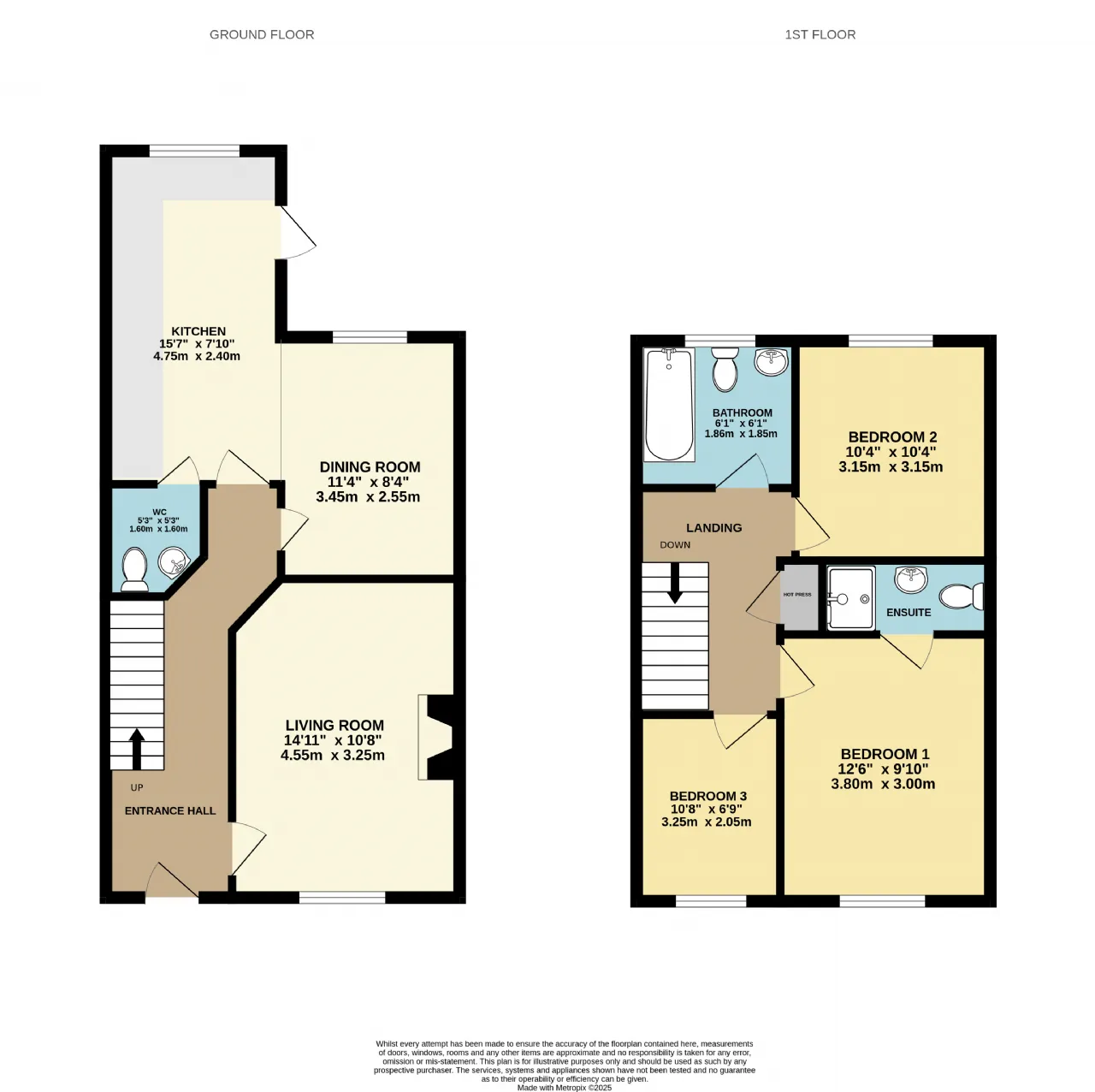 Bedroom 1 3.80m x 3.00m Laminate Flooring, Ensuite Bathroom