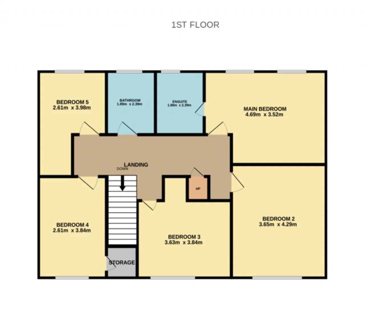 Ensuite 1.88m x 3.39m The ensuite is fully tiled from floor to ceiling, it includes a 3-piece suite with mains shower cubicle surrounded by a glass frame, two storage presses and recessed lighting.