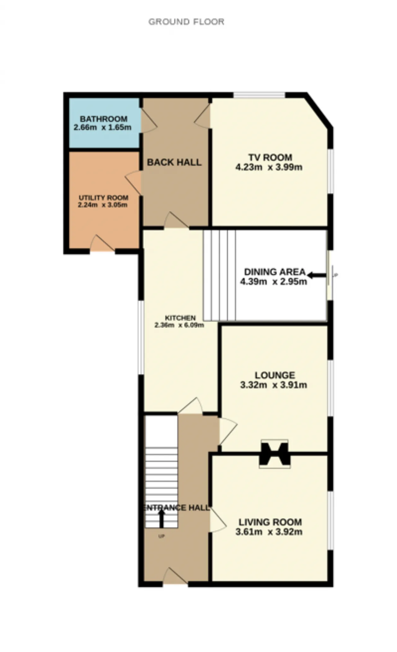 Back Hall 2.05m x 2.35m The back hall connects the bathroom, TV room and utility to the rest of the house and is accessed via the kitchen. There is wood effect tiling here.
