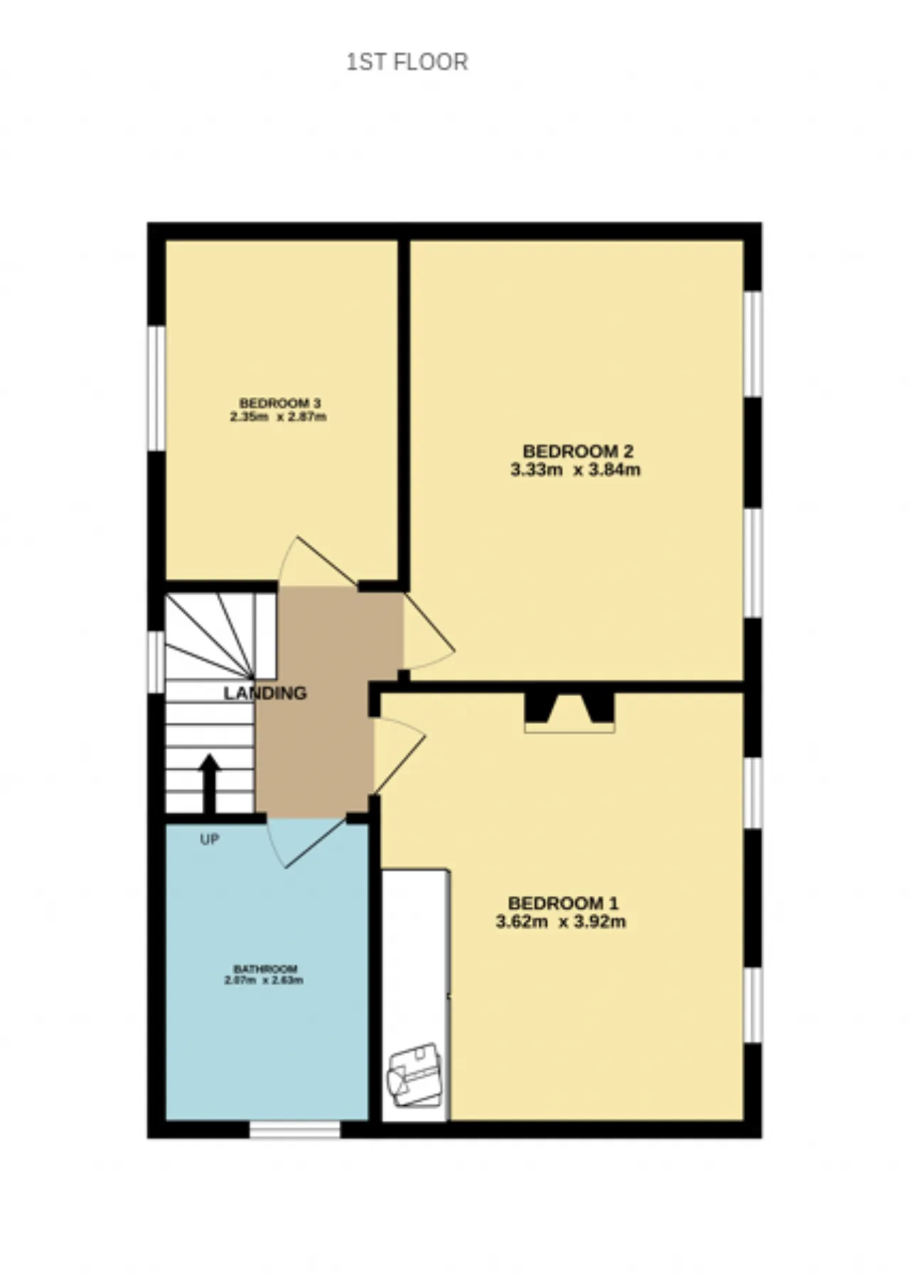 Bedroom 3 2.35m x 2.87m Nicely sized bedroom with wooden flooring and centre light.