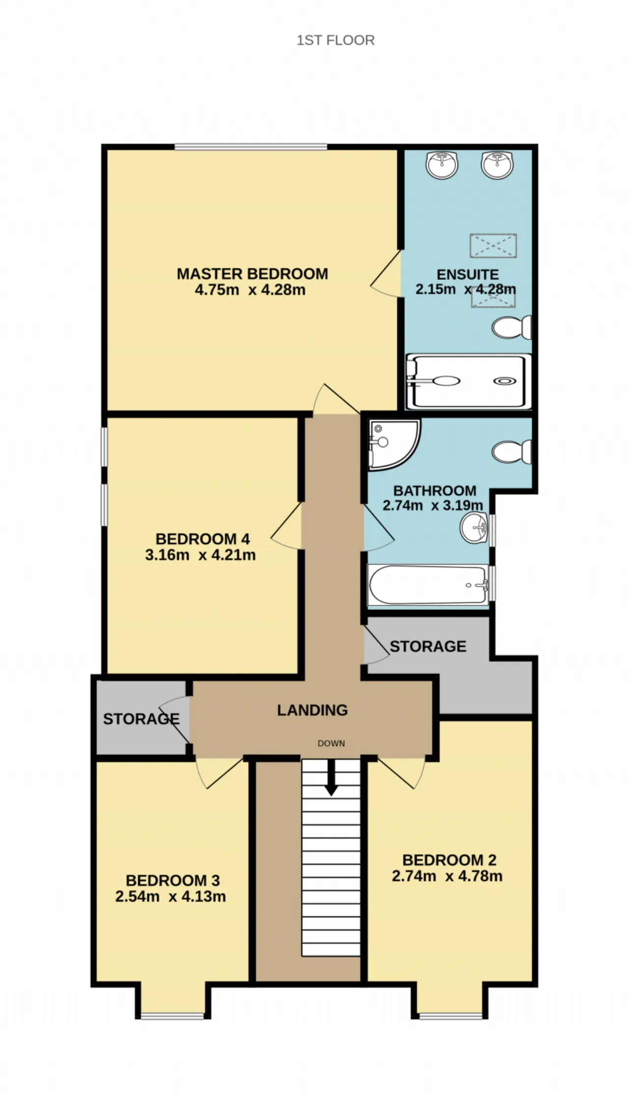 Guest WC 1.93m x 1.06m 2 piece suite with heated towel rail, storages units, tiled floor.