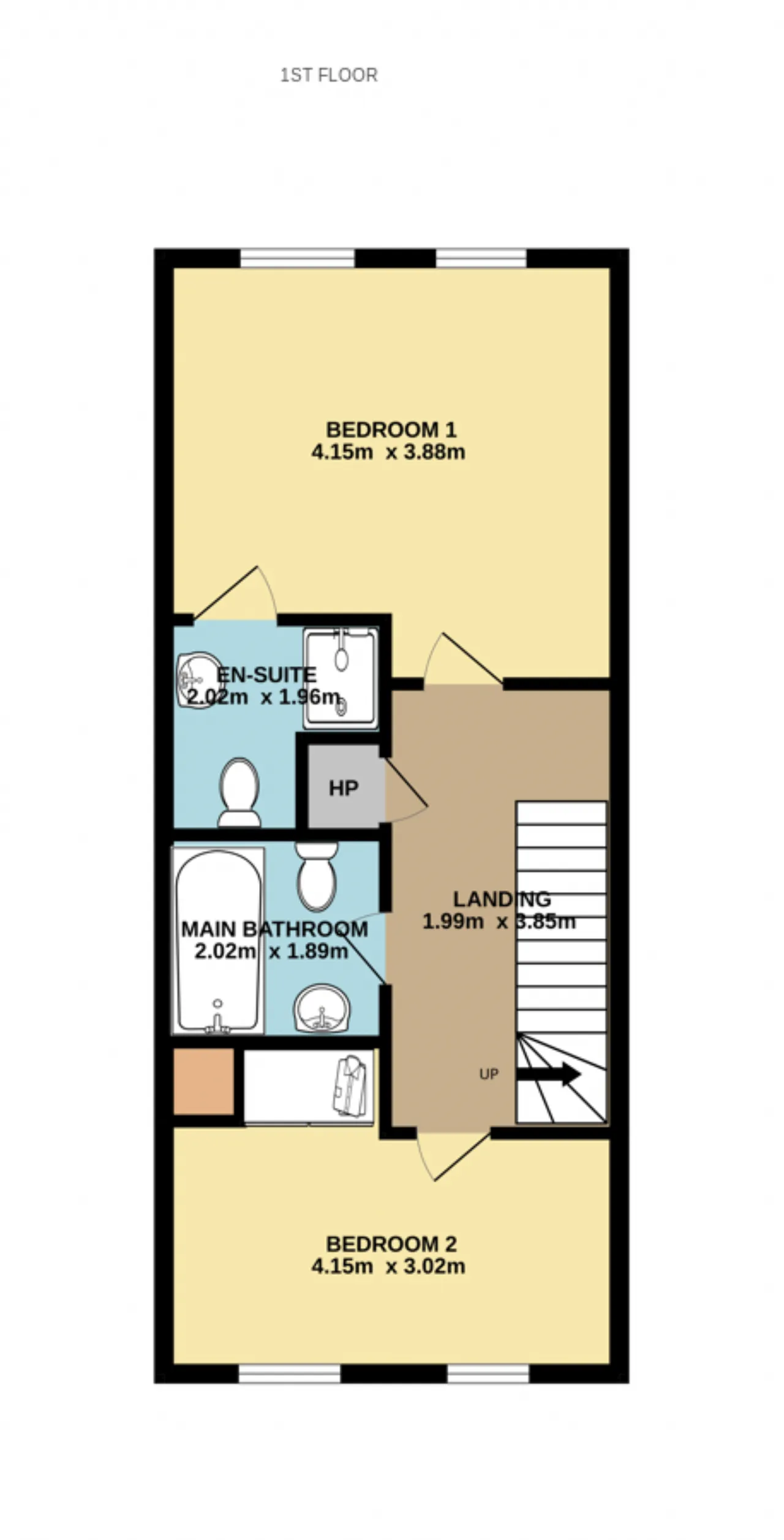 First Floor Landing 3.85m x 1.99m The landing area provides access to both bedrooms and the main bathroom.