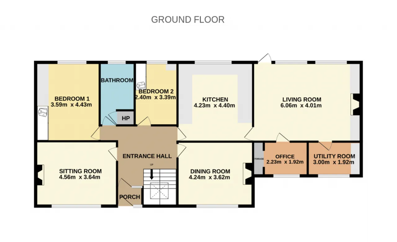 This home presents a great balance of living and bedroom accommodation consisting of a porch, entrance hall, sitting room, living room, dining room, kitchen, utility, bathroom and office. There is a double and a single bedroom downstairs and two double bedrooms along with a bathroom upstairs.