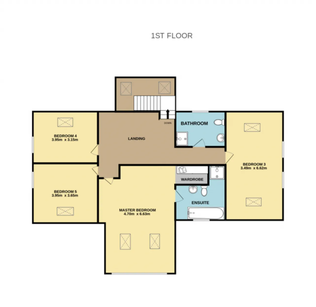 Bedroom 5 3.95m x 3.65m Another double bedroom with a dual aspect comprising of carpet flooring and a centre light fixture.