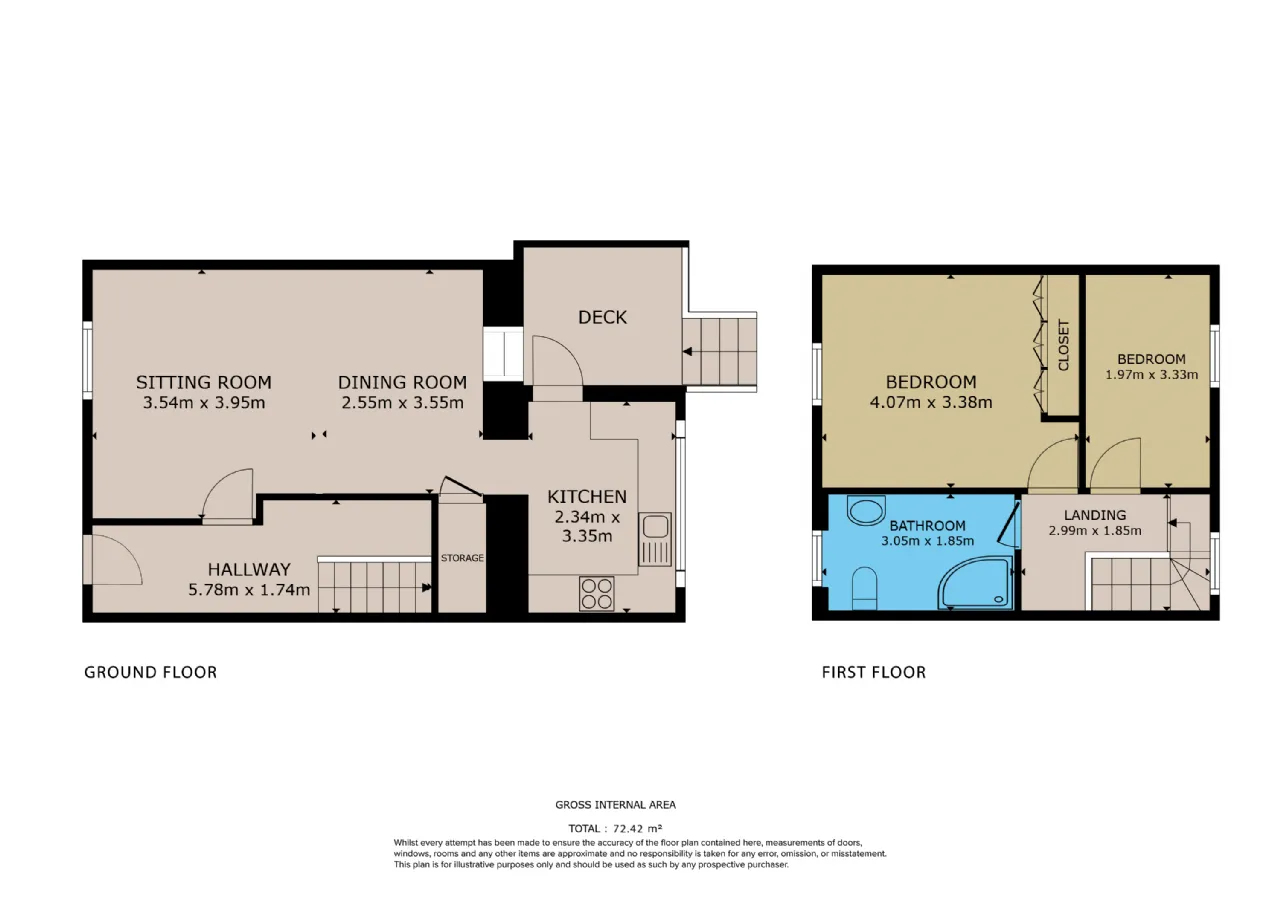 The ground floor features a generously sized living / dining room, a stylish kitchen with adjoining pantry, and access to a convenient external laundry/storage area and wc. Upstairs, the home continues to impress with two bright and airy bedrooms and a large, newly refurbished shower room, all tastefully decorated with an eye for quality and style.