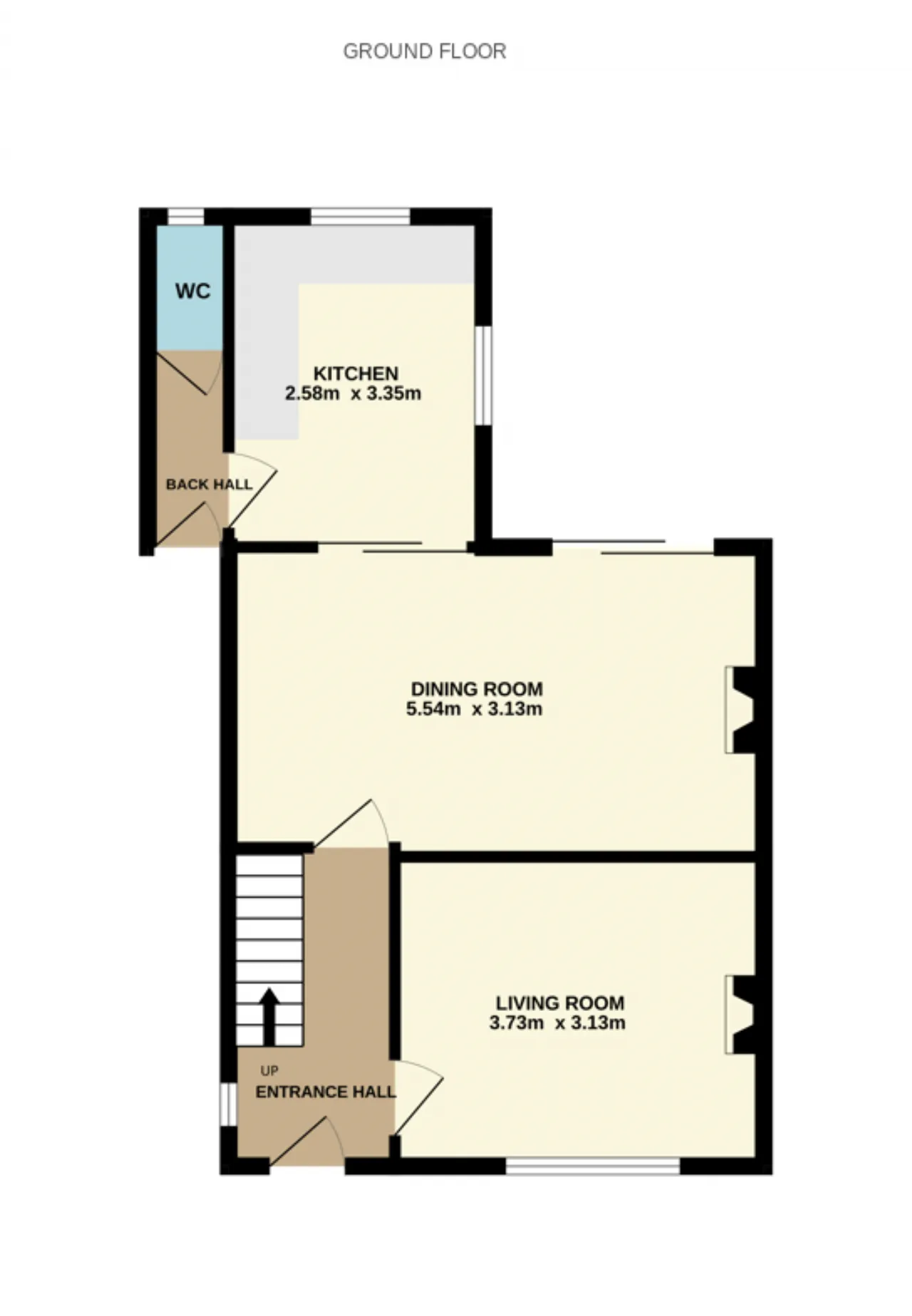 Guest WC 0.82m x 1.35m Located just off the kitchen this convenient WC benefits from tiled walls and a window for natural ventilation.