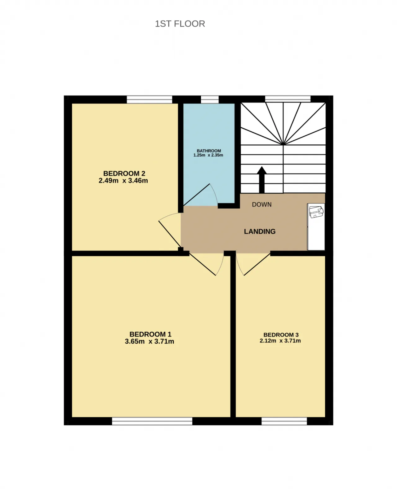 Bedroom 3 2.12m x 3.71m A single bedroom to the front of the home.