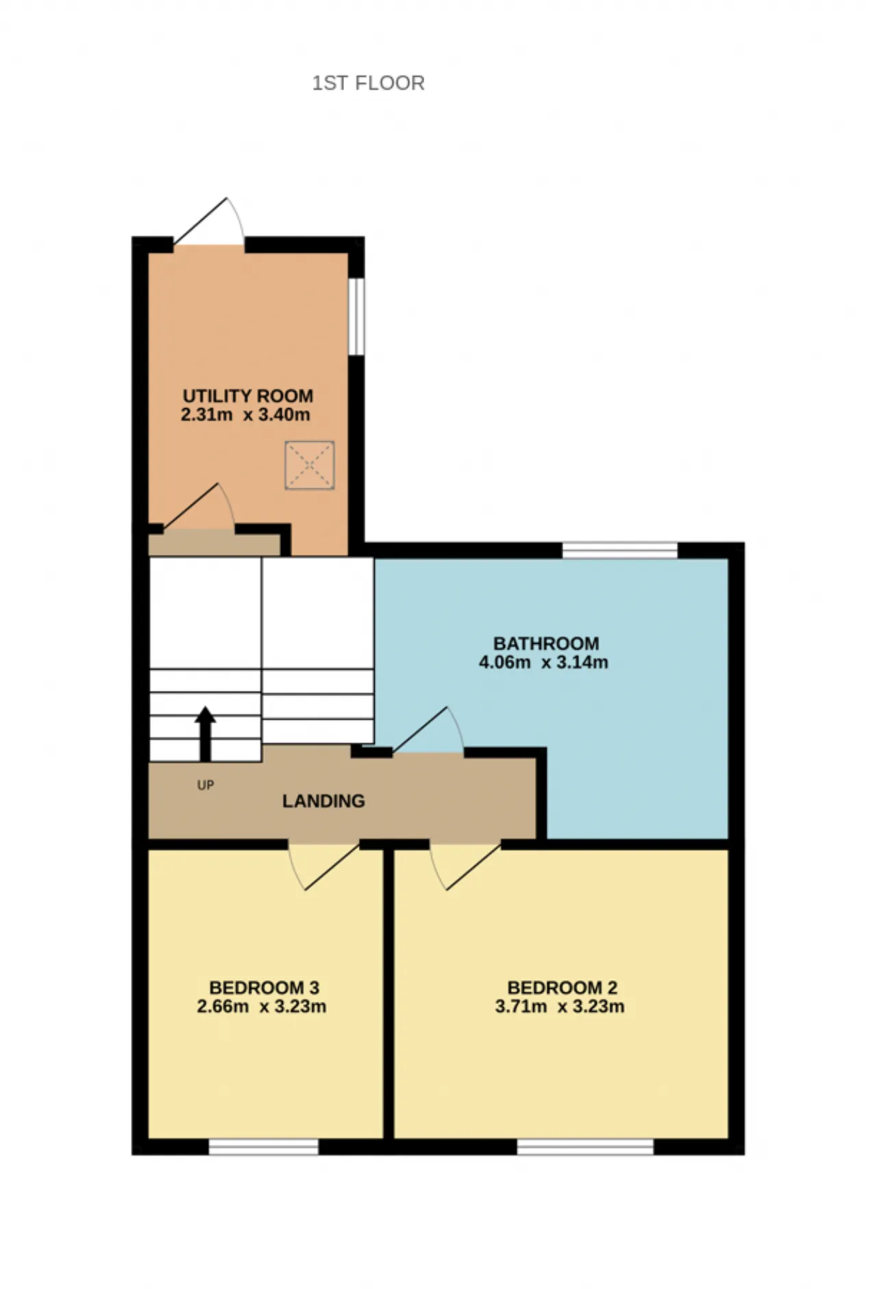 Utility Room 2.52 x 3.45 Positioned on the half landing, the utility room has plumbing for washing machine and offers additional storage and worktop space. There is access to the rear garden from here.