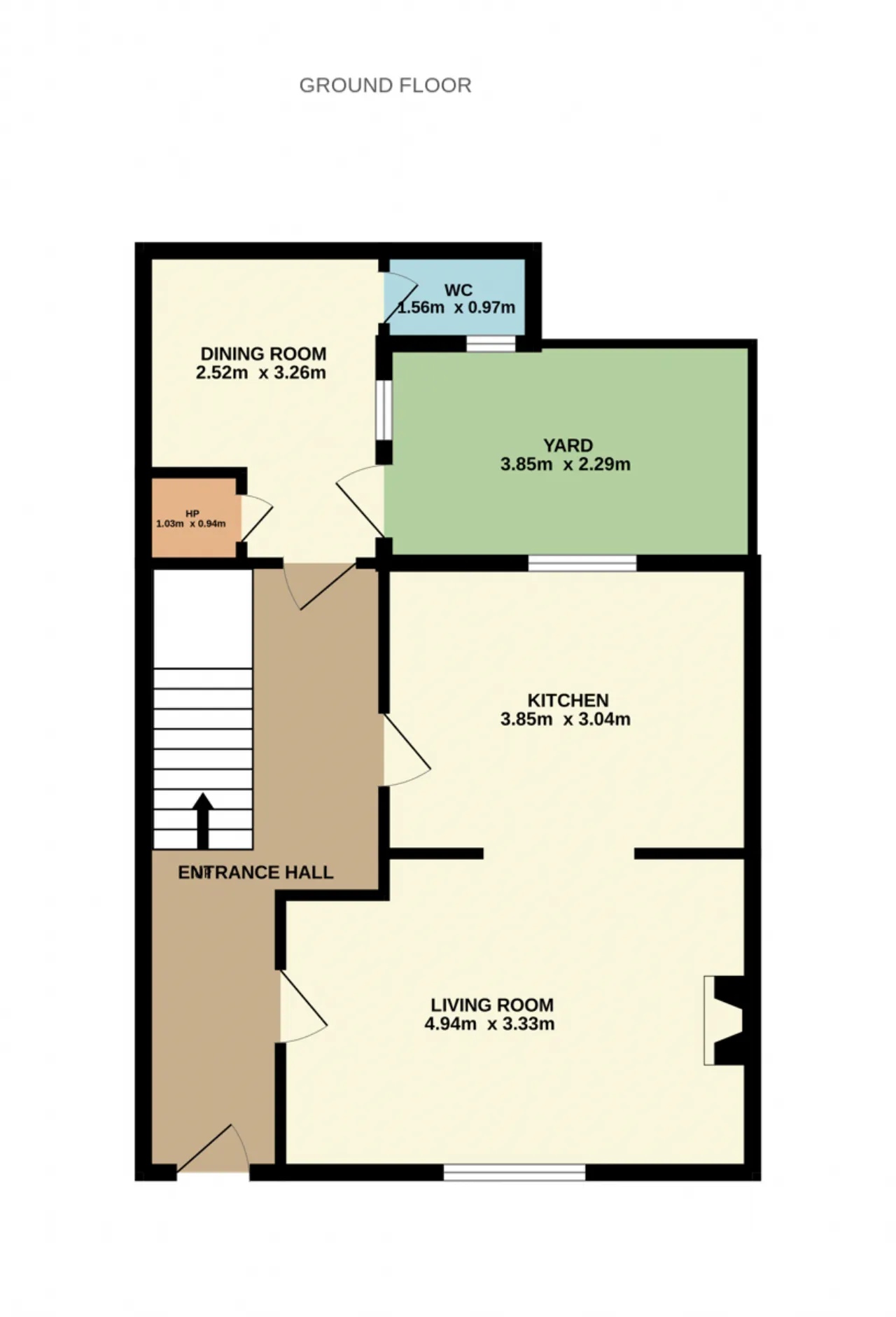 Living Room 4.94 x 3.33 Nicely sized reception room to the front of the house with a large window bringing in great natural light. An archway leads into the kitchen from here. There is an open fireplace and a laminate timber floor.