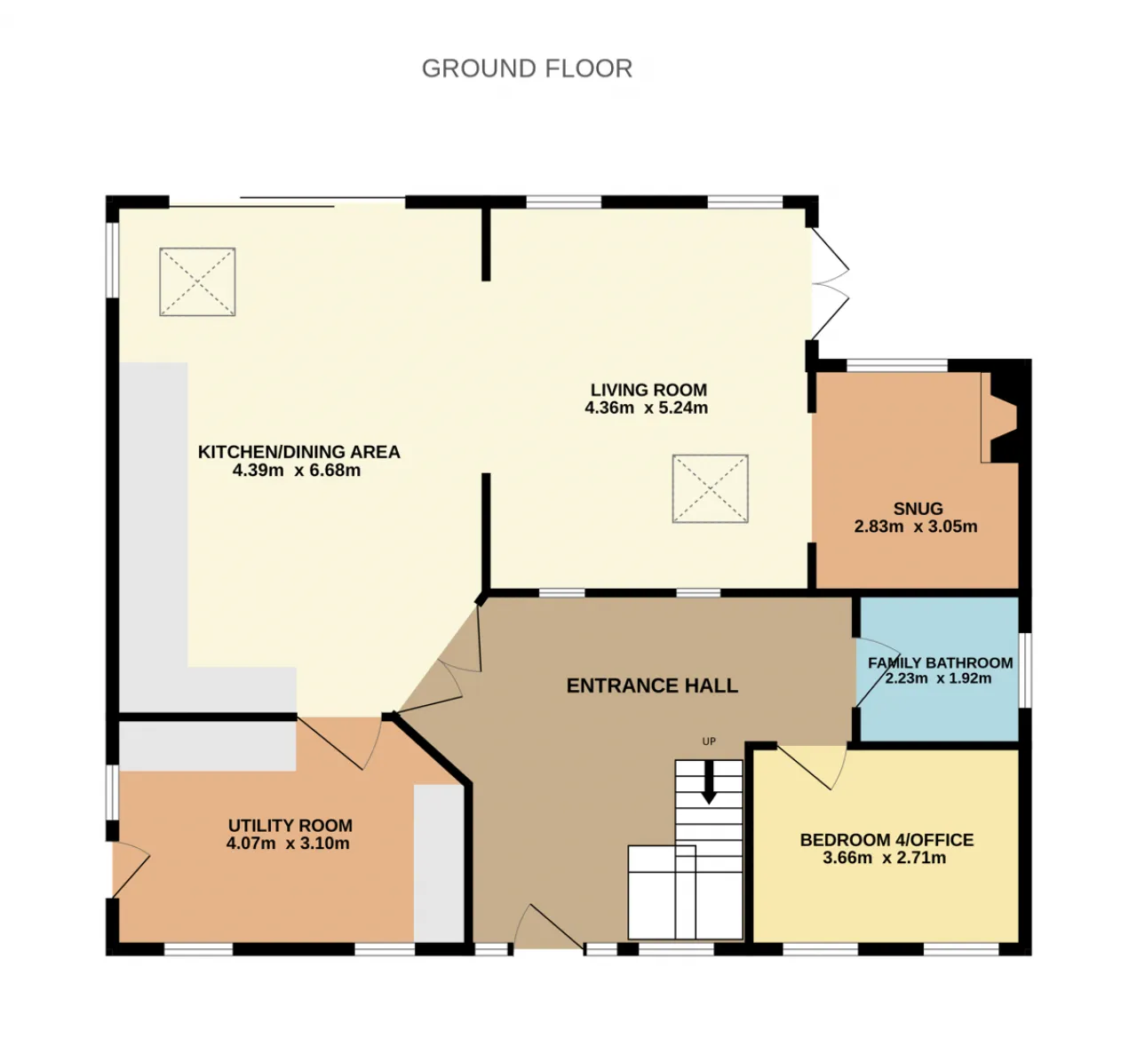 Bedroom 4/Office 3.66m x 2.71m This is a good-sized room to the front of the home, which is accessed from the entrance hall. It benefits from two good sized window overlooking the front of the home.