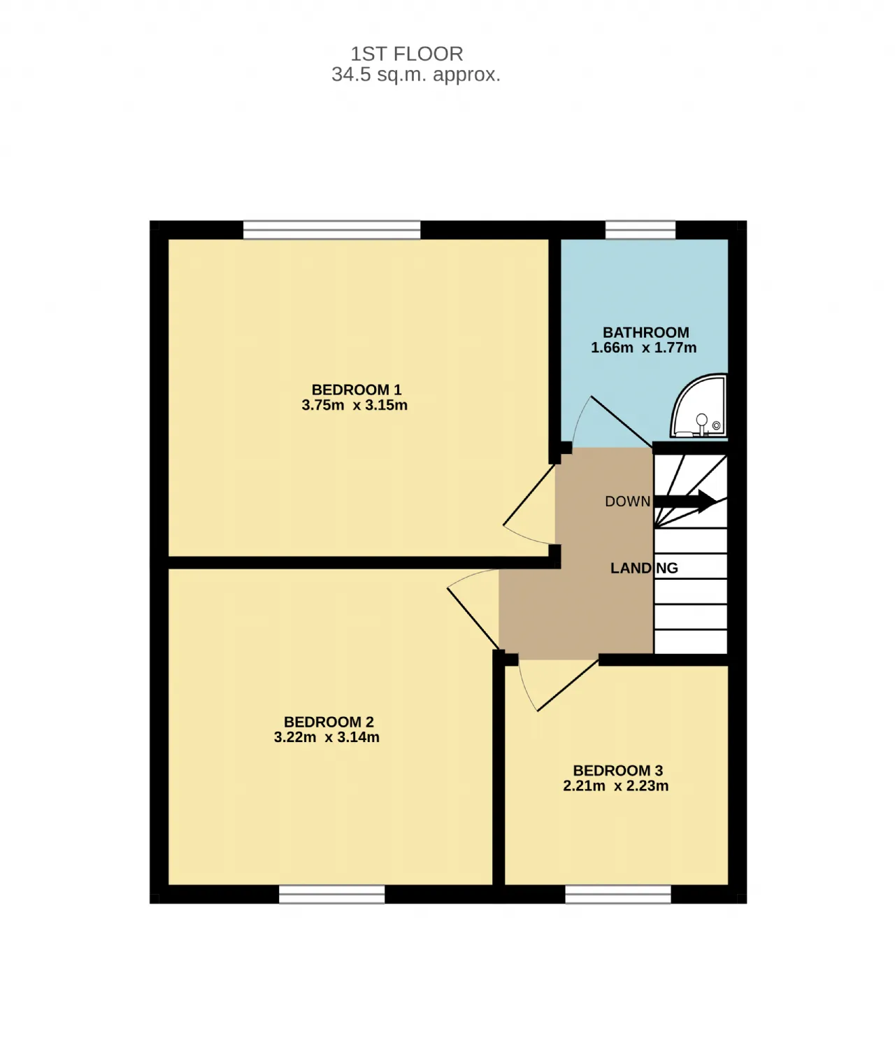 Bedroom 3 2.23m x 2.21m Single bedroom that overlooks the front of the property with a carpet floor.