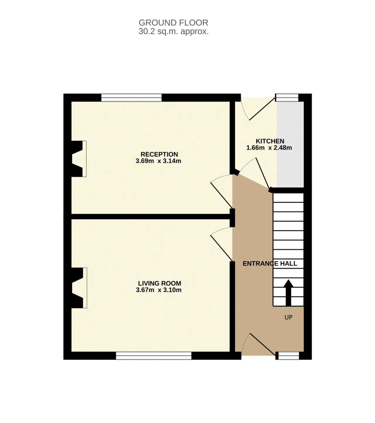 Living Room 3.10m x 3.67m Spacious living room which looks onto the front of the property which features an original black slate with cast iron and tiled insert fireplace.