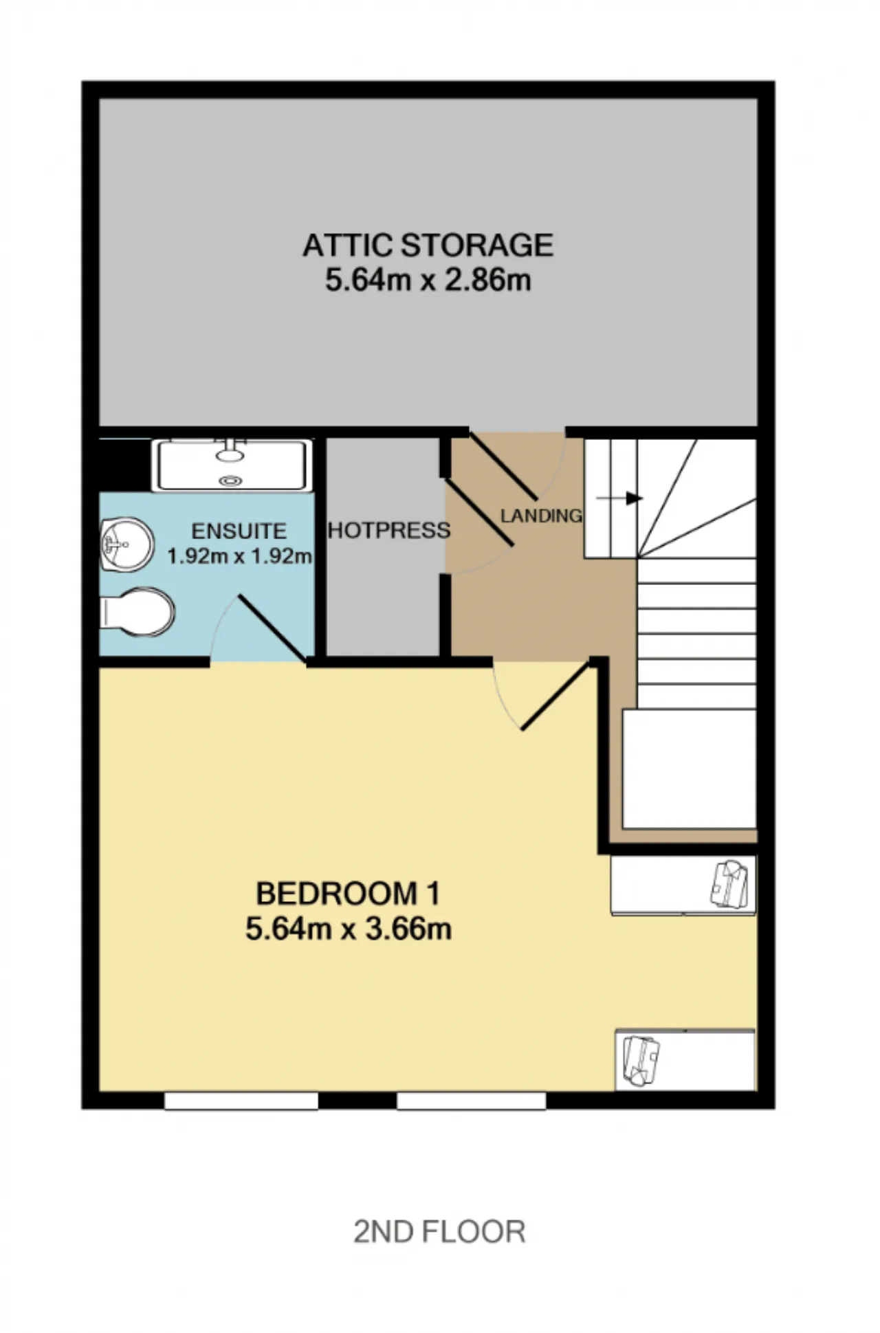Landing 2 Carpet flooring continuing from the stairs. A large hotpress provides ample storage space.