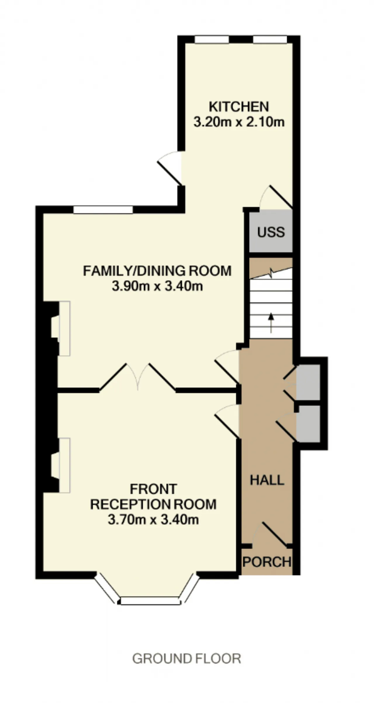 Front Reception Room 3.70m x 3.40m Featuring bay window, original open fireplace with tiled inset and ornate plaster work and picture rail