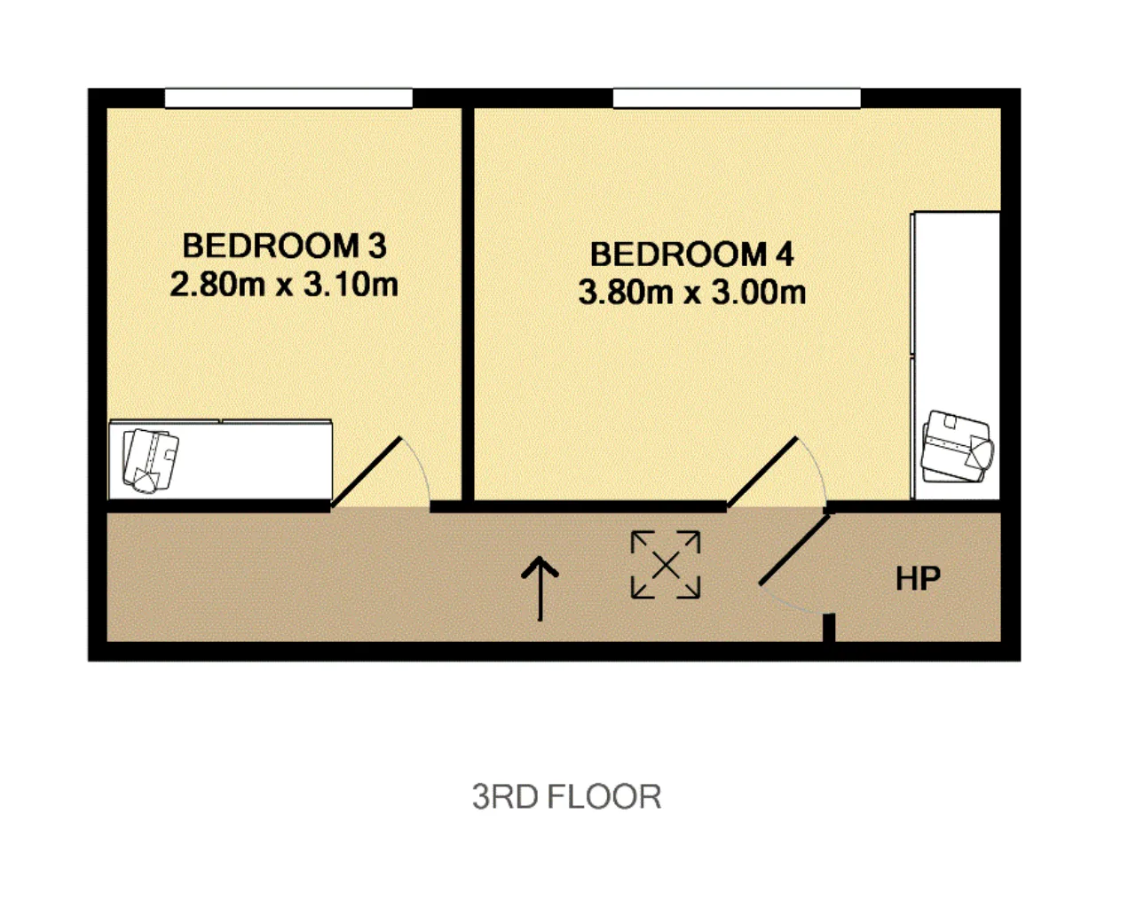 Bedroom 3 Double bedroom with carpet flooring, fitted wardrobes and window to rear.