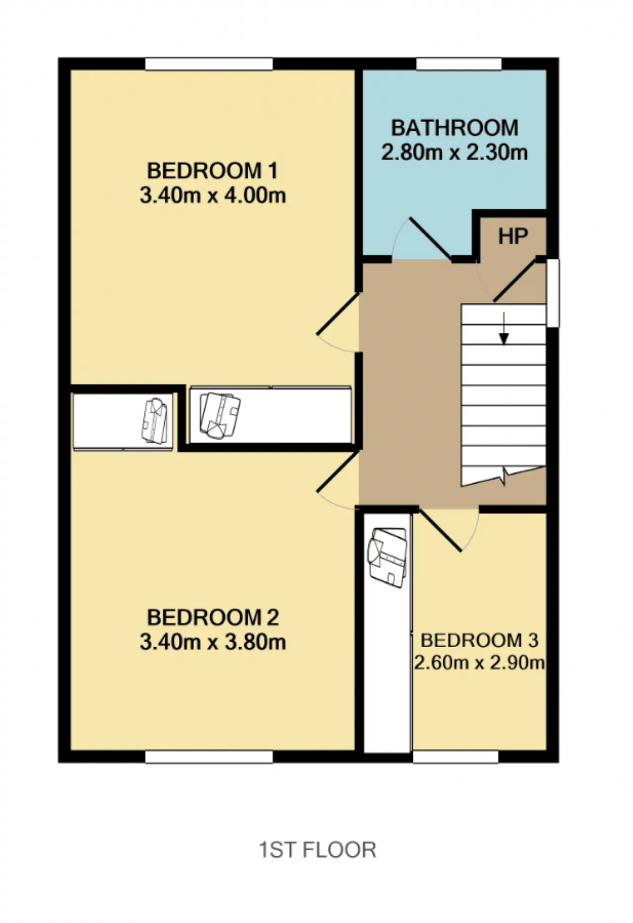 Bedroom 3 Single bedroom with laminate flooring, fitted wardrobes and window to front.