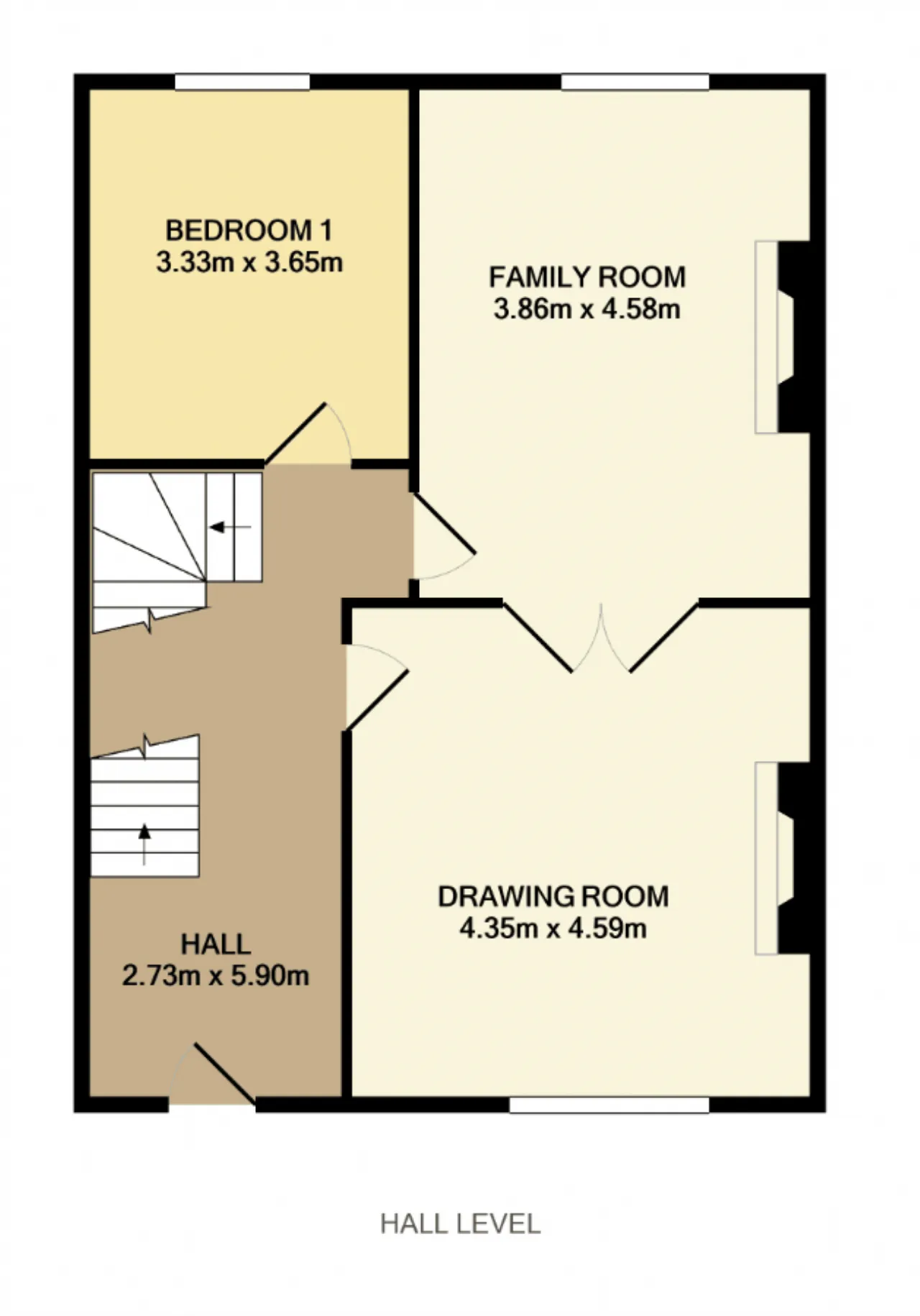 Bedroom 1 3.33m x 3.65m Double bedroom to rear with tall sash window and ceiling coving.