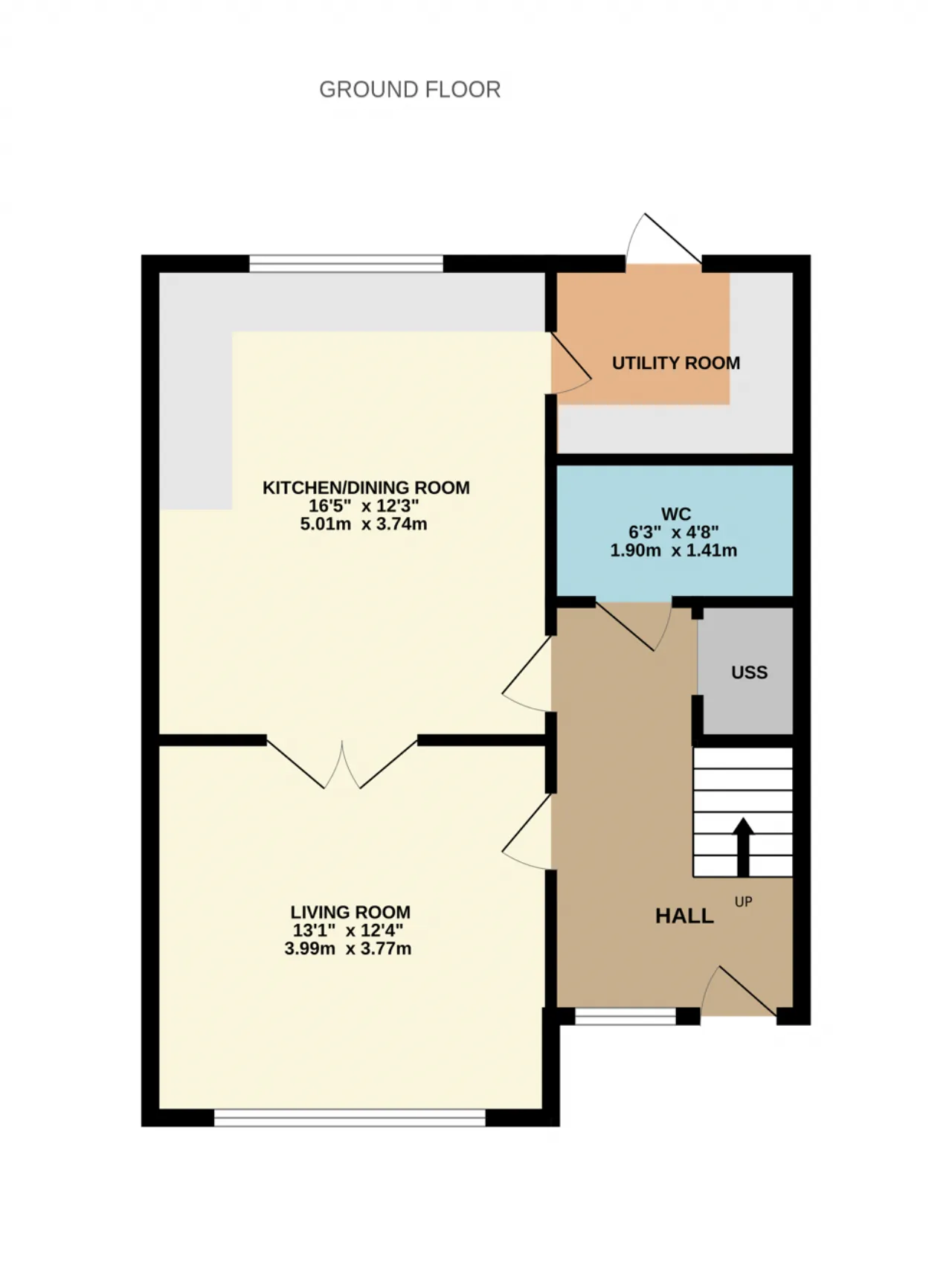 Utility Room 2.33m x 1.87m A practical utility room, located off the kitchen/dining room, offers extra storage and appliance space, with direct access to the rear garden.