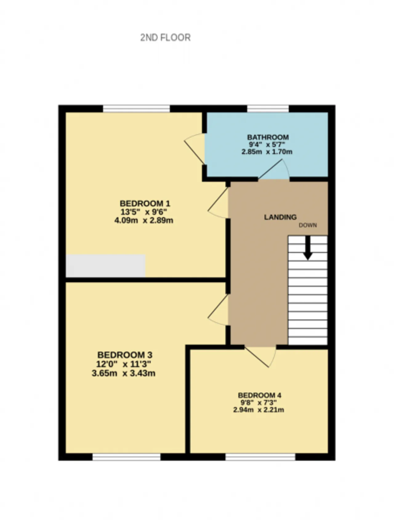 Bedroom 4 2.94m x 2.21m Another well-sized single bedroom on the second floor, featuring carpet flooring.