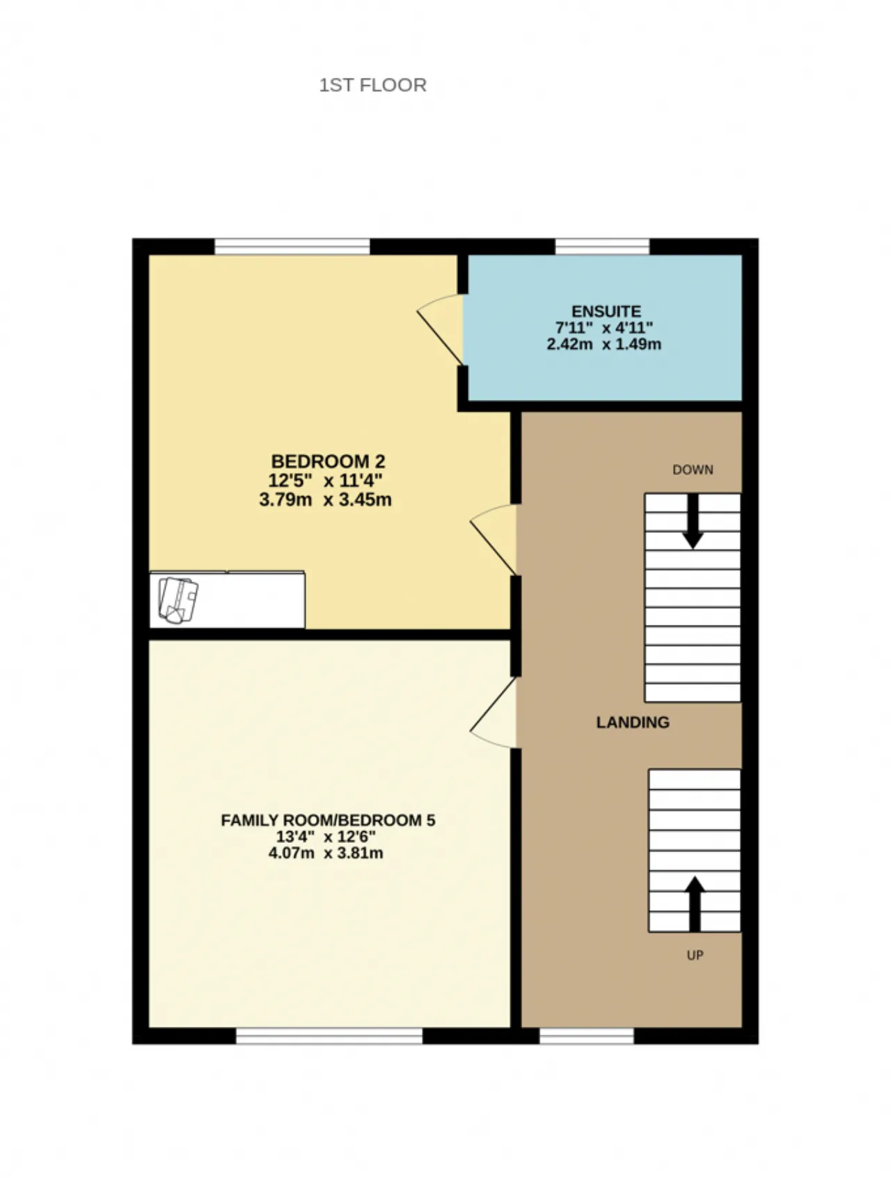 Family Room/Bedroom 5 3.81m x 4.07m Ascending to the first floor, you'll find a versatile family room, which can also serve as a fifth bedroom. This bright and inviting space offers exceptional flexibility, perfect as a comfortable family lounge, a dedicated home office, a play area, or an additional guest bedroom, adapting to your specific needs. Please note the photo referencing this room has been virtually staged.
