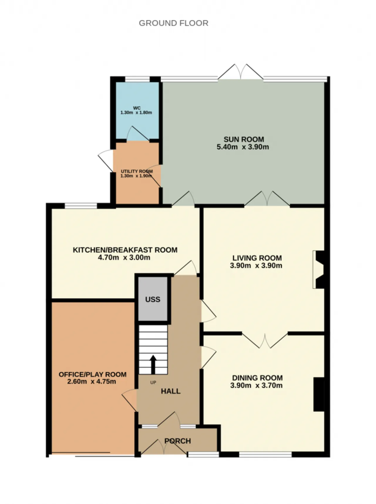 Upon entering, you are welcomed by an inviting entrance porch leading into a bright and airy hallway with understairs storage, setting the tone for the spacious accommodation within. The ground floor features two interconnecting reception rooms, perfect for both entertaining and family living. The converted garage provides additional flexible space, ideal as a playroom, home office, or guest area. To the rear, the kitchen/breakfast room is well-equipped and flows seamlessly into a utility room, WC, and a bright sunroom, offering lovely views over the garden and filling the space with natural light. Upstairs, a large landing leads to four well-proportioned bedrooms and a modern shower room, making for a comfortable and practical family layout.