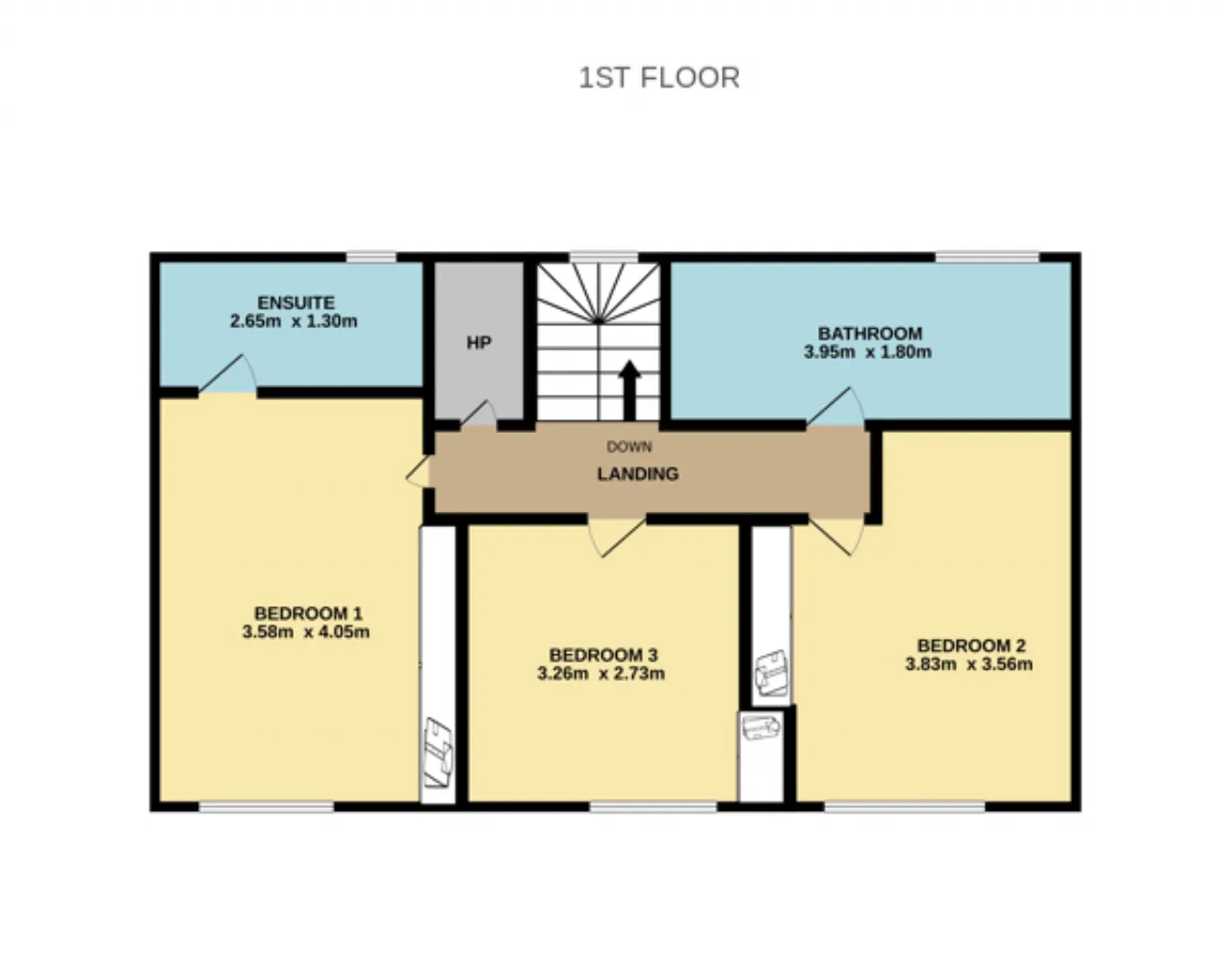 Bedroom 1 3.58m x 4.05m Double to front, built in wardrobes, door to ensuite