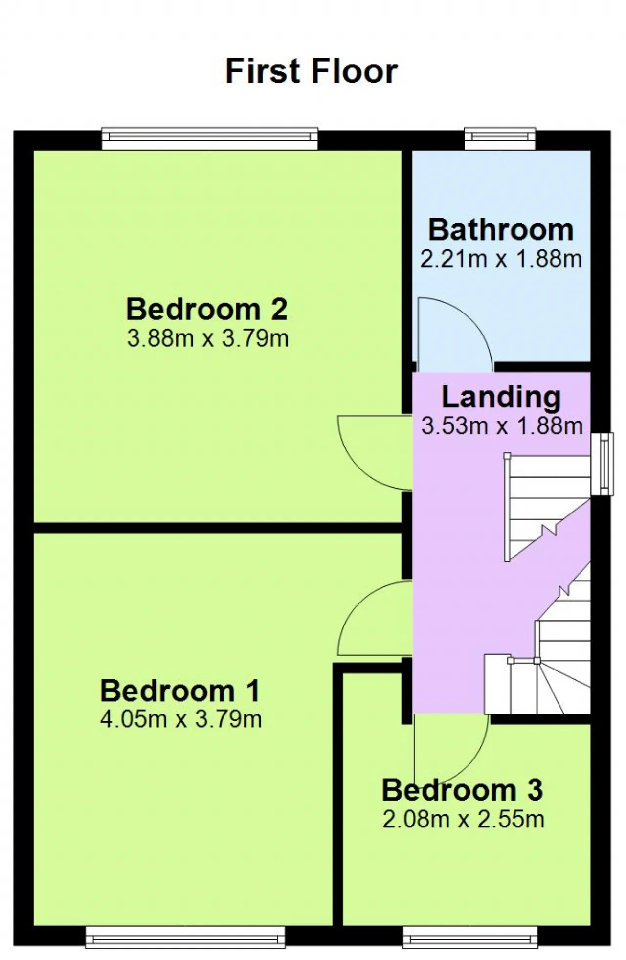 Bedroom 1 4.05m x 3.79m Generous double bedroom overlooking the rear garden.