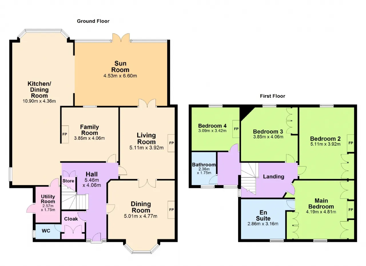 Master Bedroom 4.19m x 4.81m Double bedroom with pair of built in wardrobes, carpet floor, cast iron mantlepiece with open fire, door to