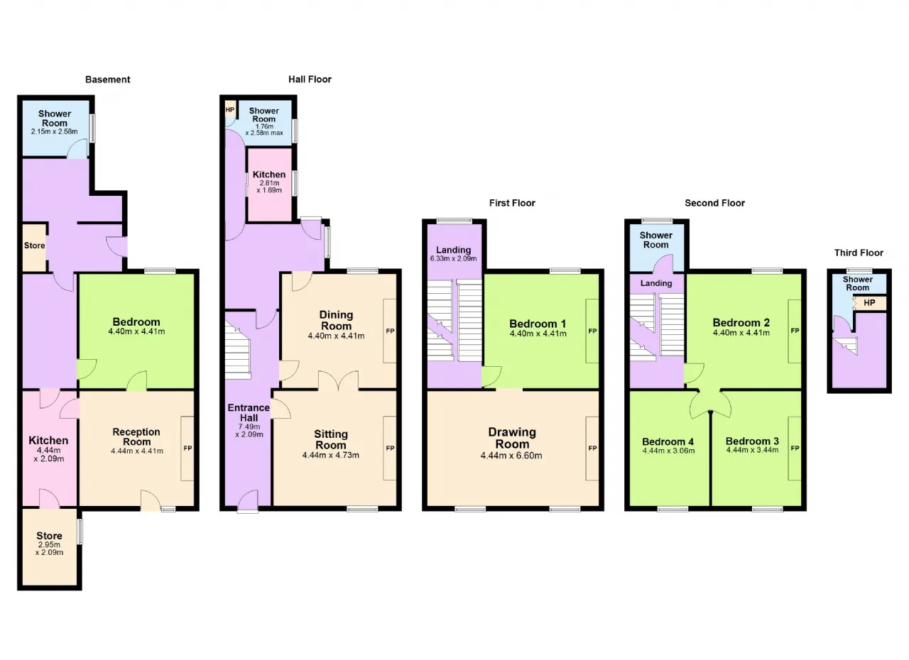 The property has most recently been laid out as an investment property with four apartments, one being on each floor. Subject to planning, the house will easily reconvert back into a spacious family home with a suggested layout comprising of entrance hall, sitting room, dining room, drawing room, kitchen, 4 bedrooms with a number of bathrooms. There would also be a self-contained apartment at basement level.