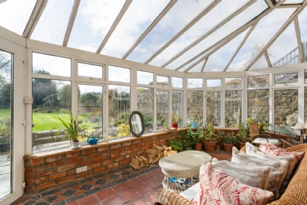 Conservatory: with terracotta tiled floor and French doors to the garden.