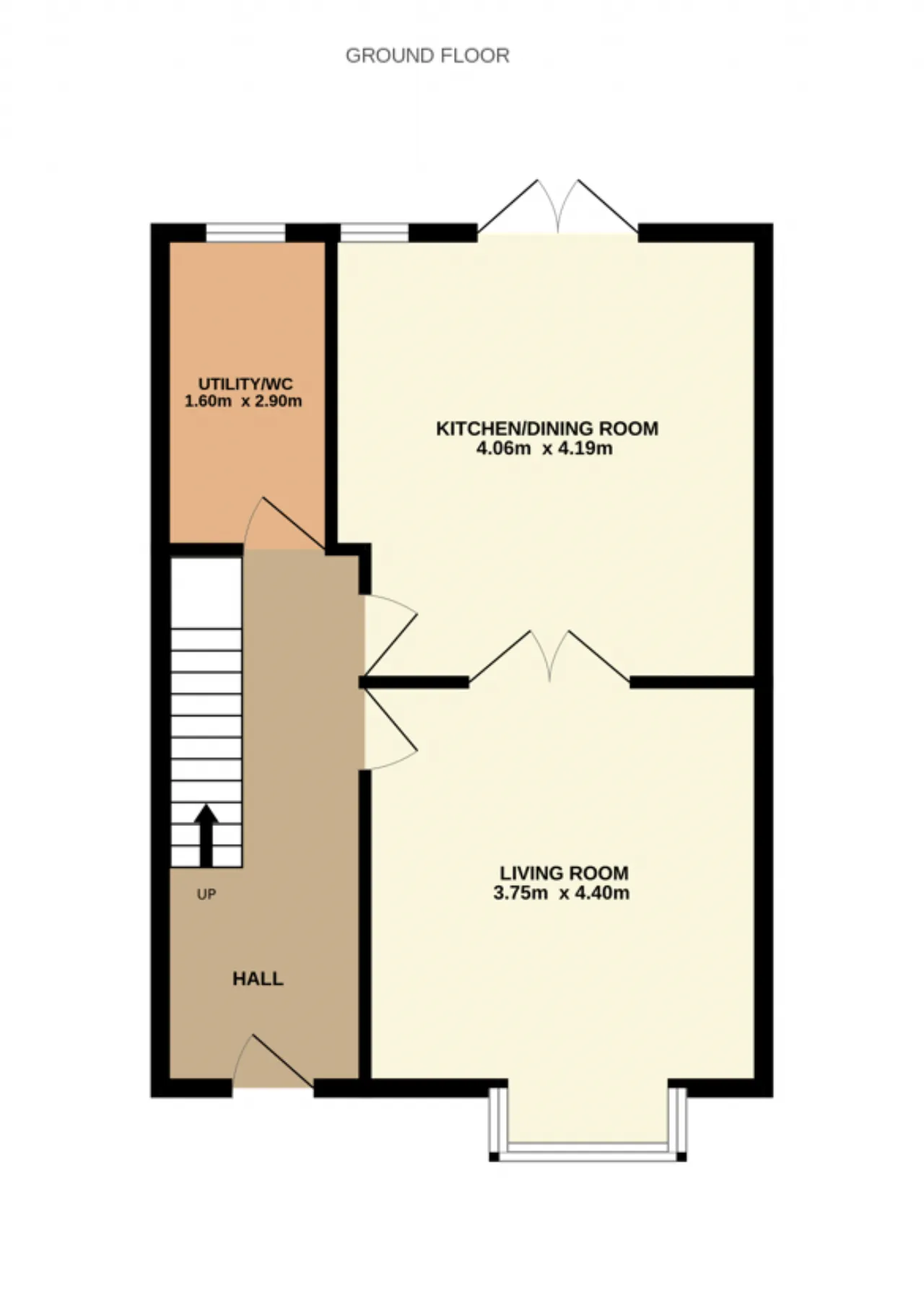 Guest WC/Utility Room 1.60m x 2.90m Tiled flooring, window to rear, w.c. and wash hand basin. Plumbed for washing machine and dryer.