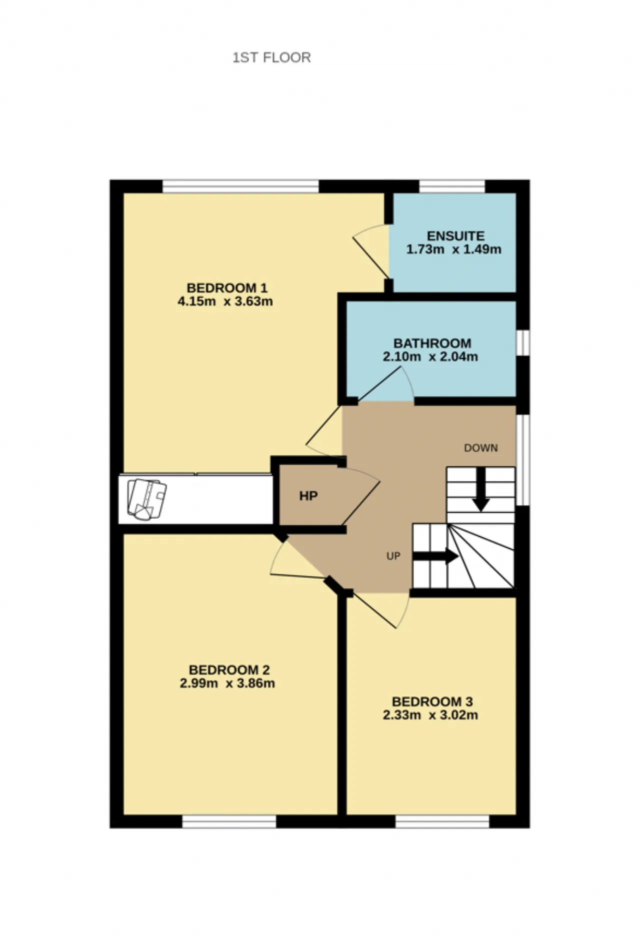 Bedroom 1 4.15 x 3.63 Primary bedroom overlooking the rear with built in wardrobes and ensuite.