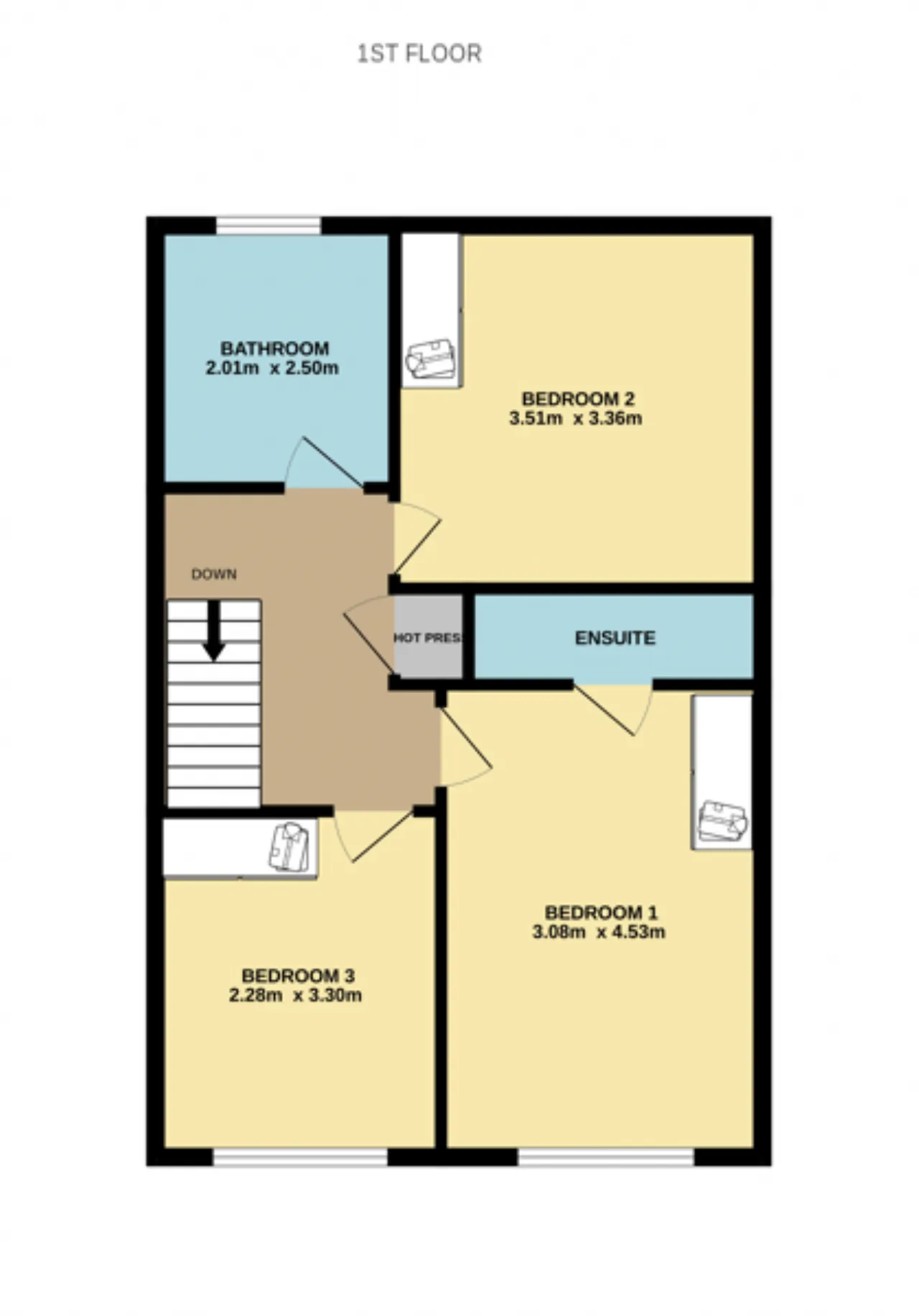 Bedroom Two 3.36m x 3.51m Carpet, fitted wardrobes, ensuite.