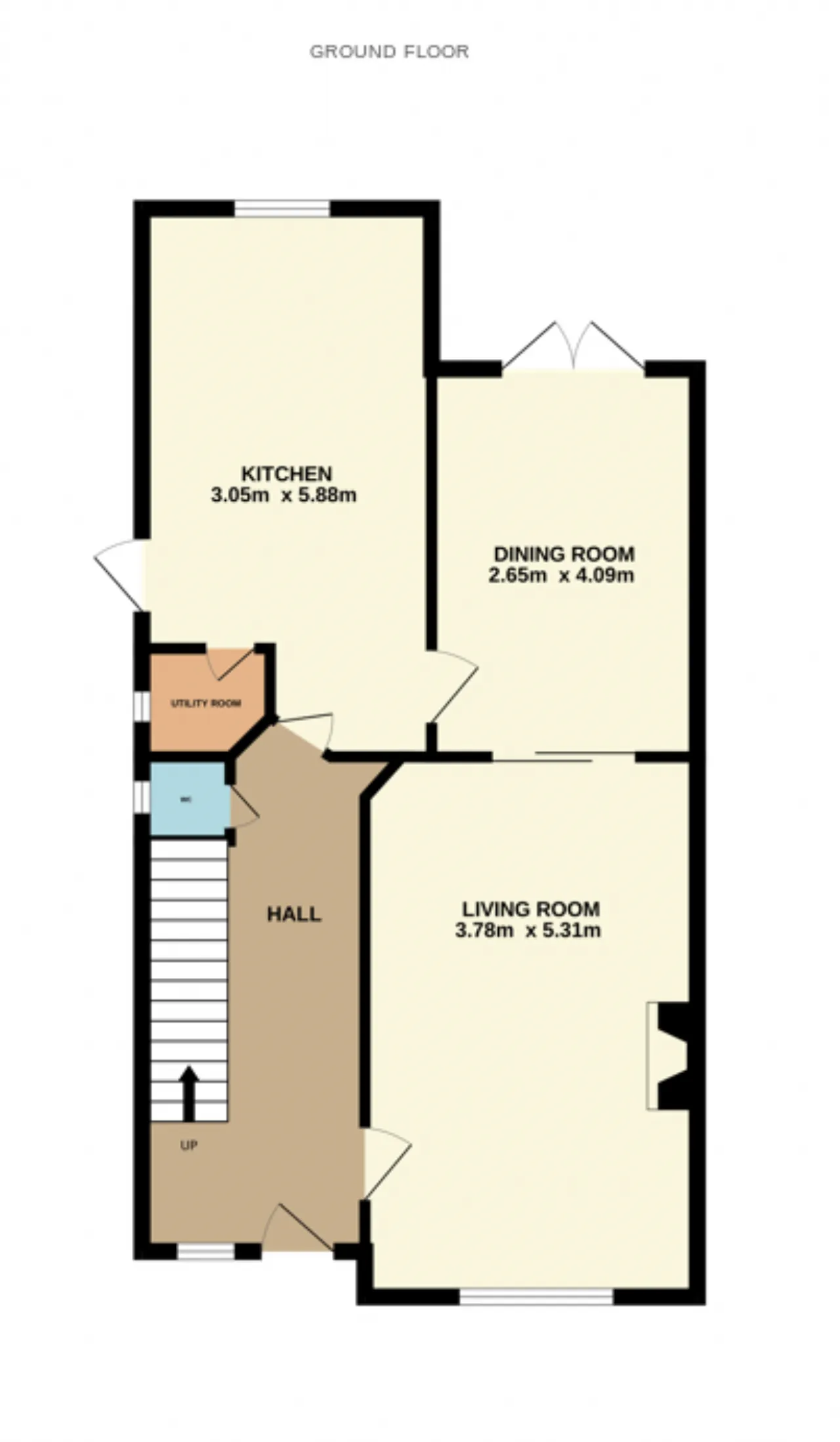 Bedroom 3 2.43m x 3.65m Spacious single bedroom to rear of property with built in wardrobe and carpet flooring.