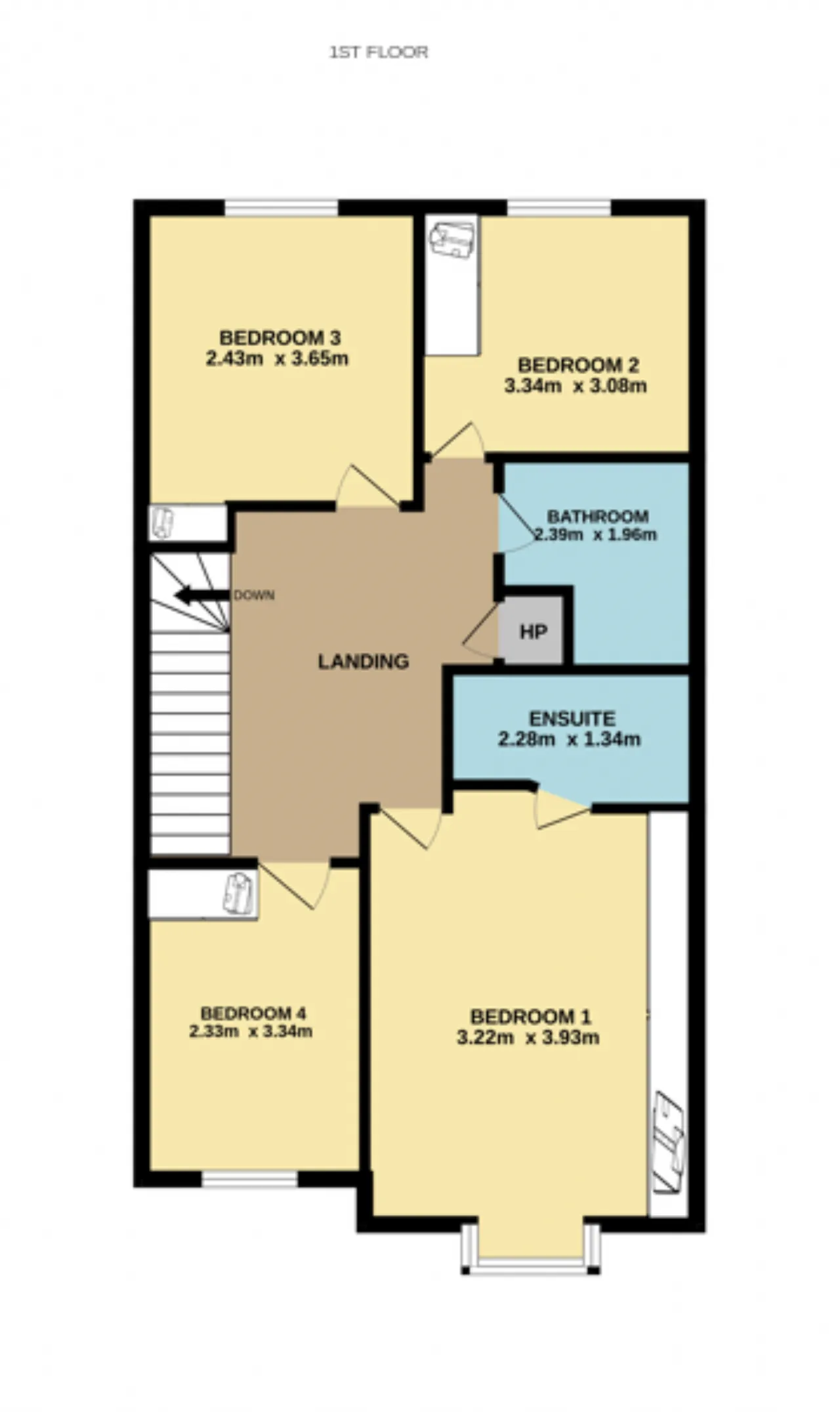Bedroom 1 3.22m x 3.93m Spacious double bedroom to front of property with built in wardrobe, carpet flooring and an ensuite.