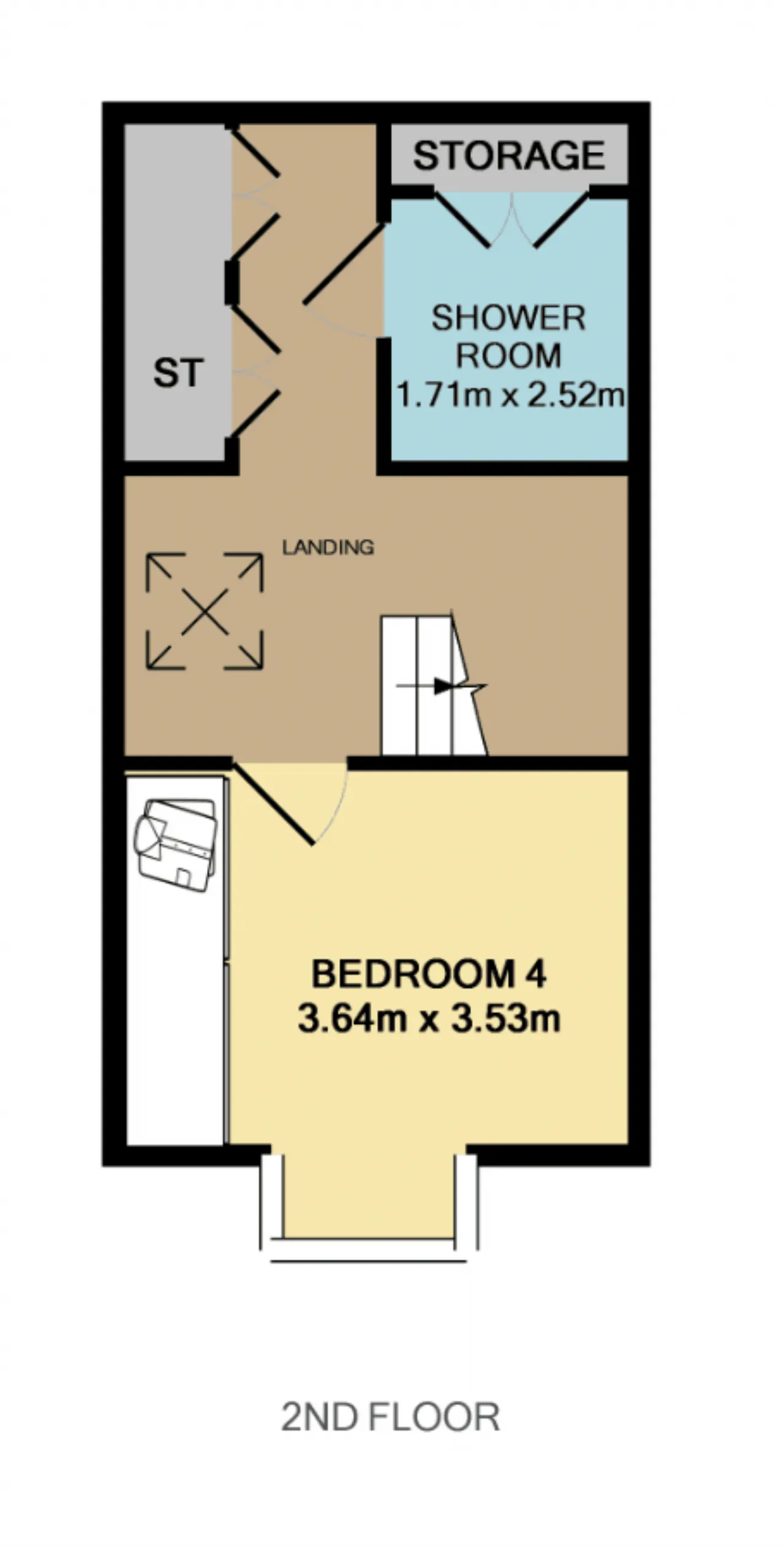 Bedroom 4 3.64m x 3.53m Box bay window, carpeted flooring, built-in storage.