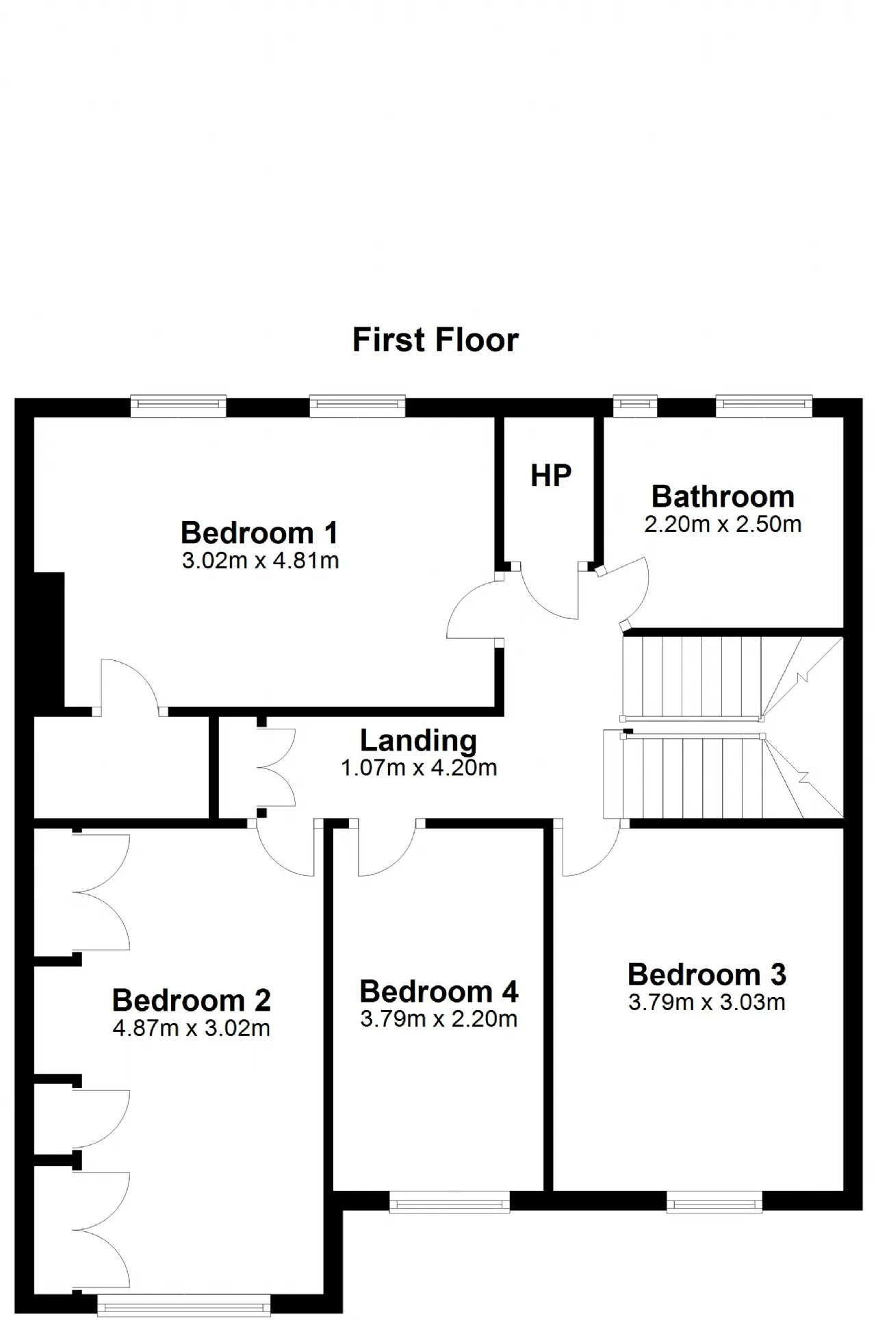 Landing 1.07m x 4.20m With large shelved linen cupboard