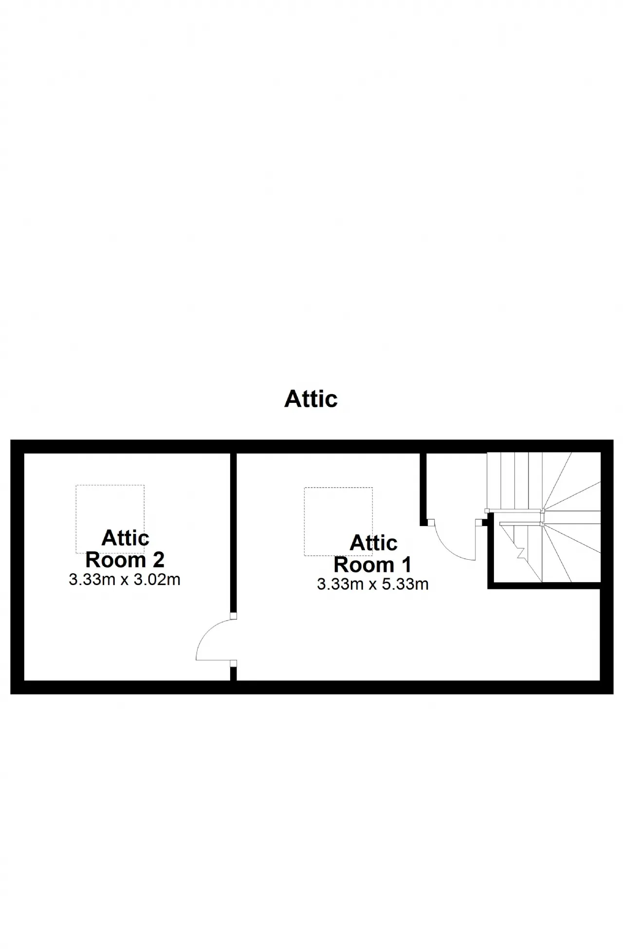 Attic Room 1 & 2 3.33m x 5.33m & 3.33m x 3.02m Stairs leading to attic with two good rooms, both carpeted with large Velux windows, potential to add en-suites, large under eaves storage