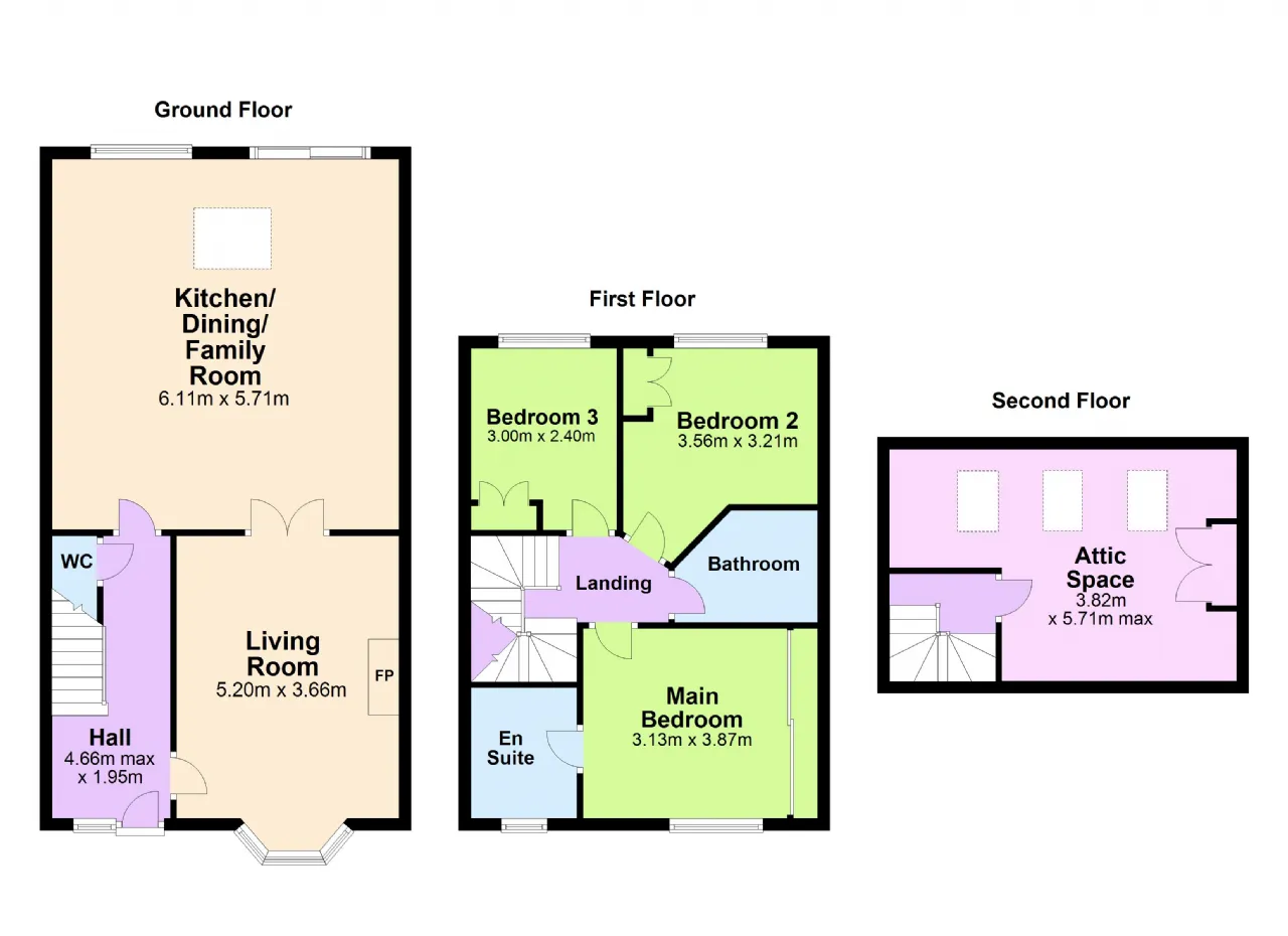 Extending to c. 129sq.m. (1,388 sq.ft to include attic room) the accommodation briefly comprises; an entrance hallway with guest WC, a living room with bay window overlooking the front and double doors opening into an extended open plan living/dining/ kitchen. This room with wide tiled floor has a modern kitchen with glazed splash backs and upstands, a dining area with a sliding patio door opening into the rear garden and a rooflight overhead flooding the room in natural light. At first floor level are 3 well-proportioned bedrooms, with the main bedroom spanning the entire width of the property and availing of excellent sliding wardrobes and an en-suite shower room. A family bathroom completes the accommodation at this level. An attic room extending to an additional 22sq.m (236 sq.ft) has fitted wardrobes, excellent under eaves storage and three Velux roof lights.