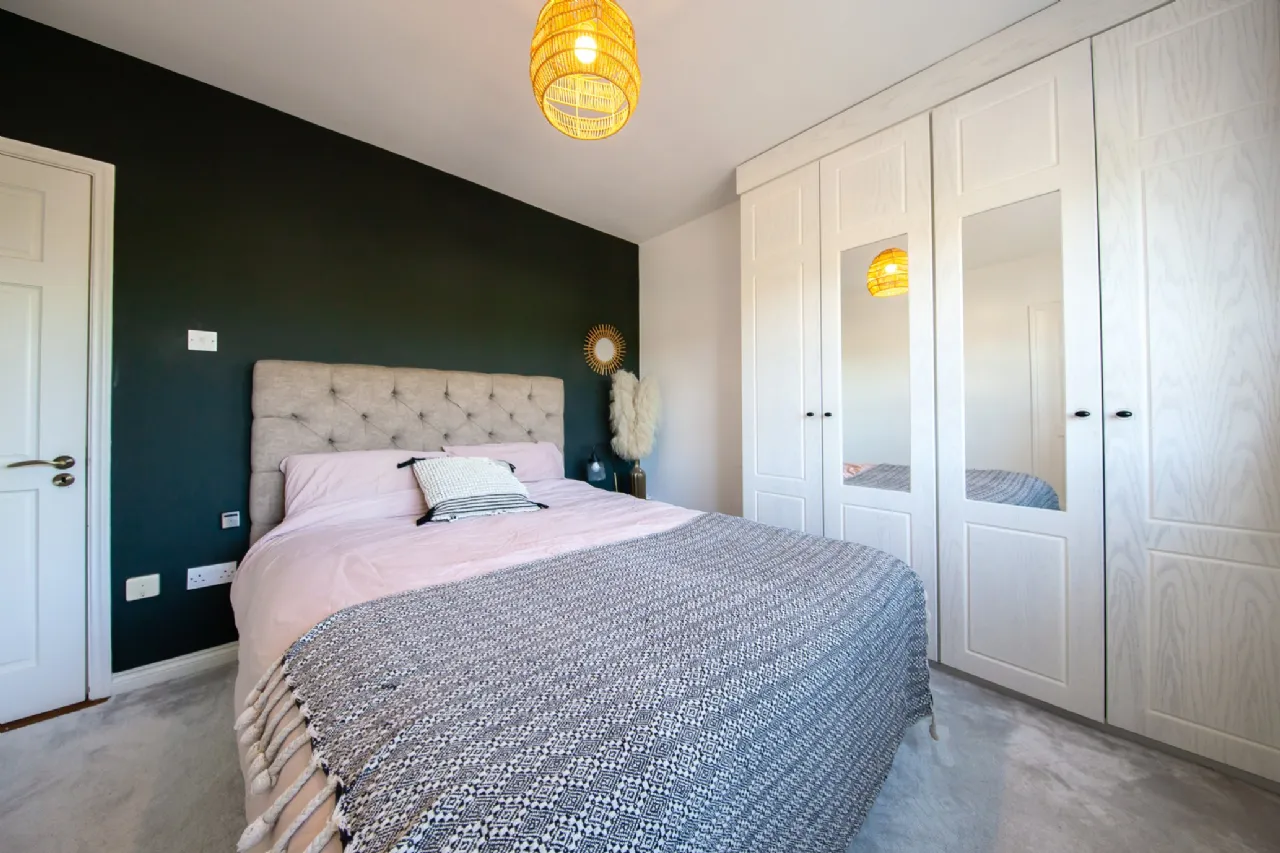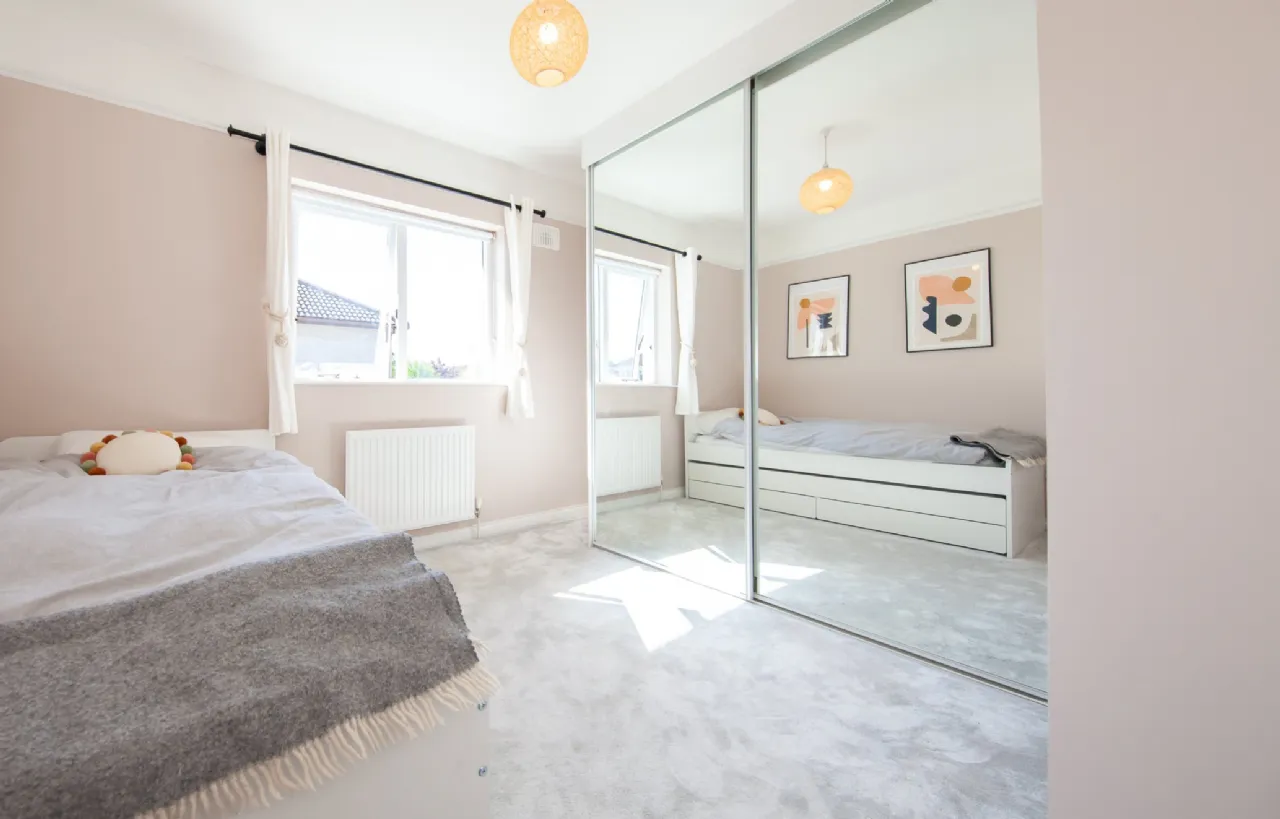 Bedroom 2 3.01m x 3.46m With window overlooking the rear, excellent range of mirrored fronted sliding wardrobes